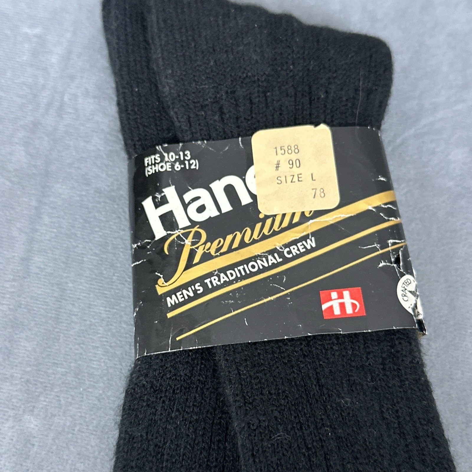как выглядит Vintage Hanes Premium Mens Traditional Crew Socks Black Acrilan Nylon 10-13 New фото