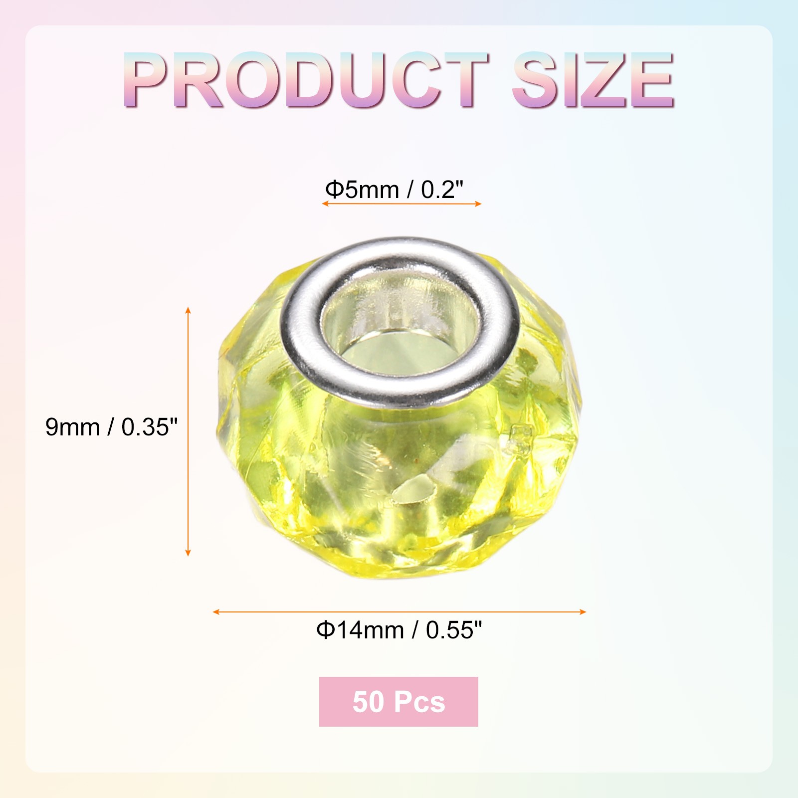 50Pcs 14mm Large Hole Acrylic Beads Yellow European Loose Faceted Bead