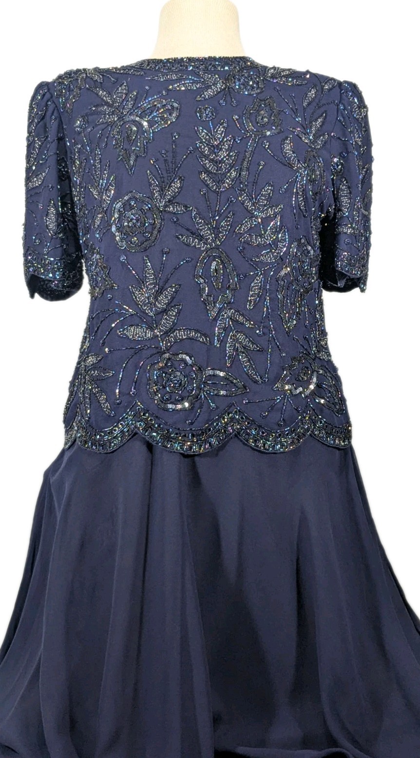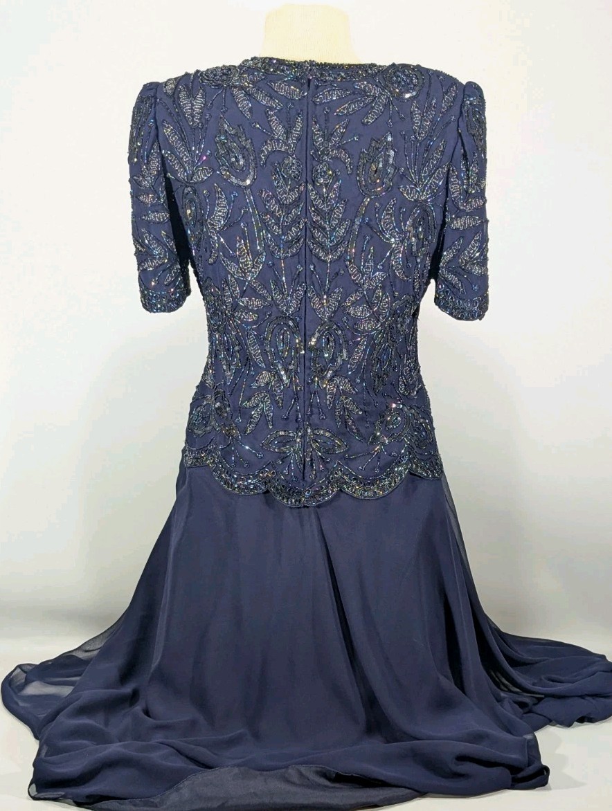 как выглядит Brilliante by J.A. long beaded dress women size large navy blue sequins vintage фото