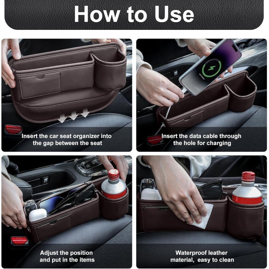 как выглядит Seat Gap Filler Organizer with Cup Holder, Universal Fit Soft 1 Pack brown фото