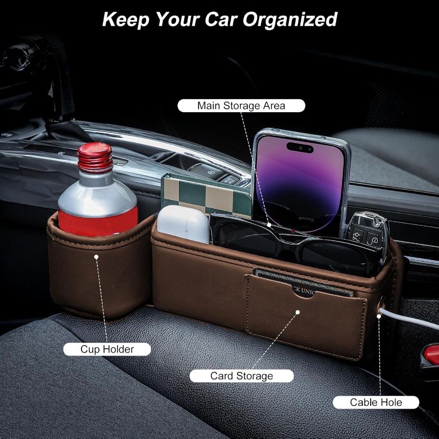 Seat Gap Filler Organizer with Cup Holder, Universal Fit Soft 1 Pack brown
