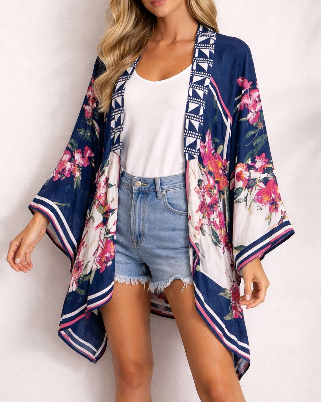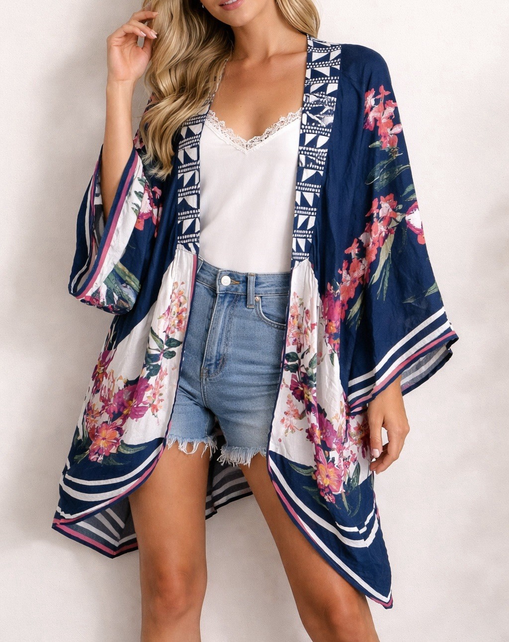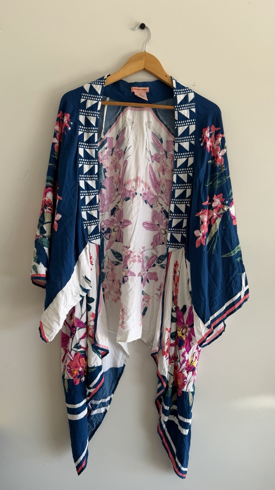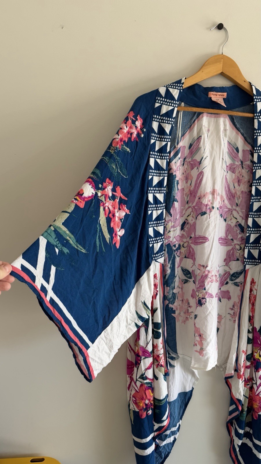 Flying Tomato Kimono Cardigan S/M Boho Floral Rayon Open Front Festival