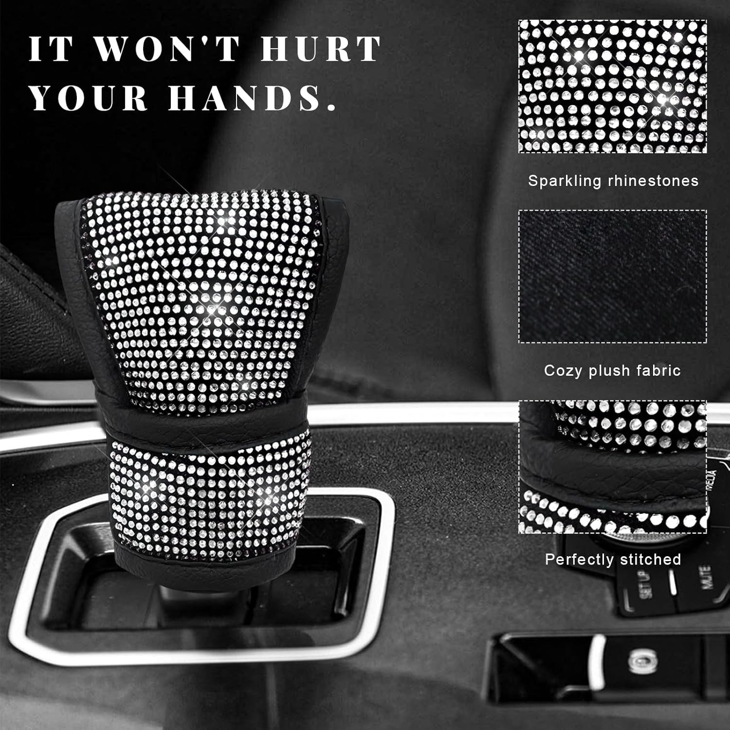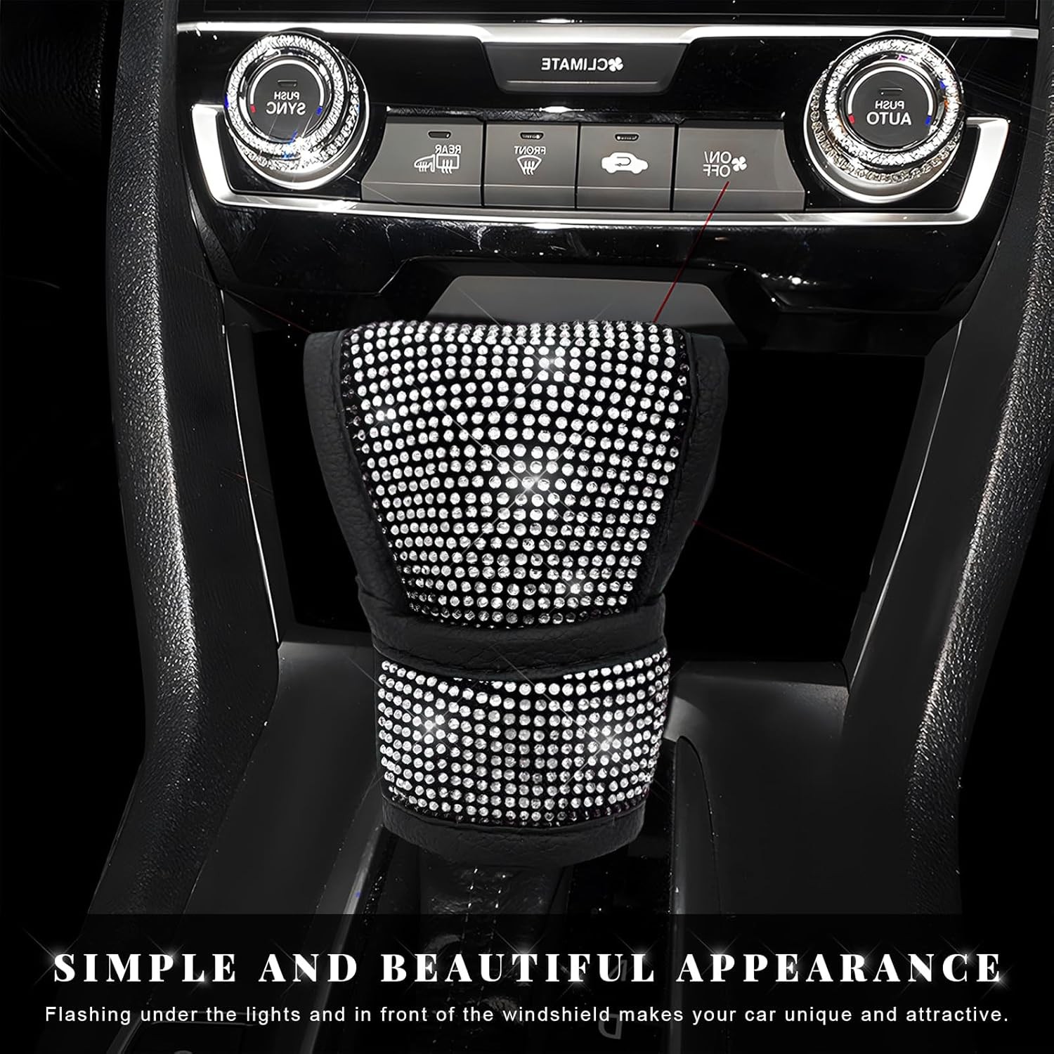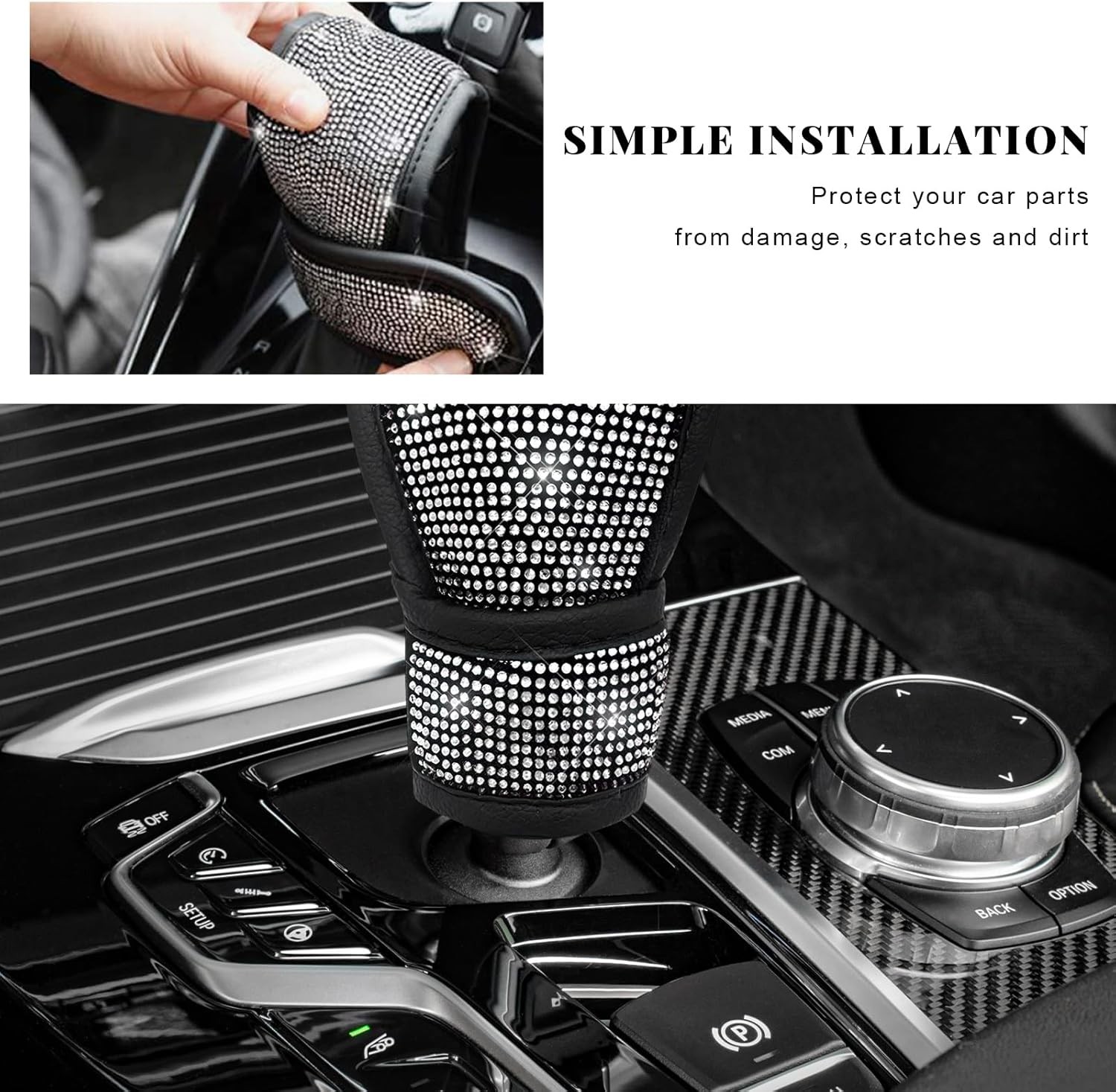 Bling Auto Gear Shift Knob Cover, Rhinestone Glitter Shifter Stick White
