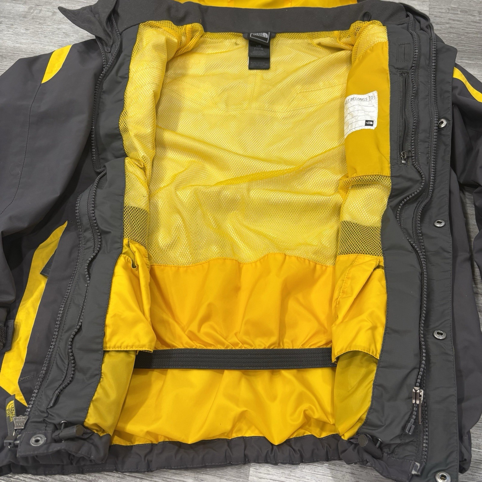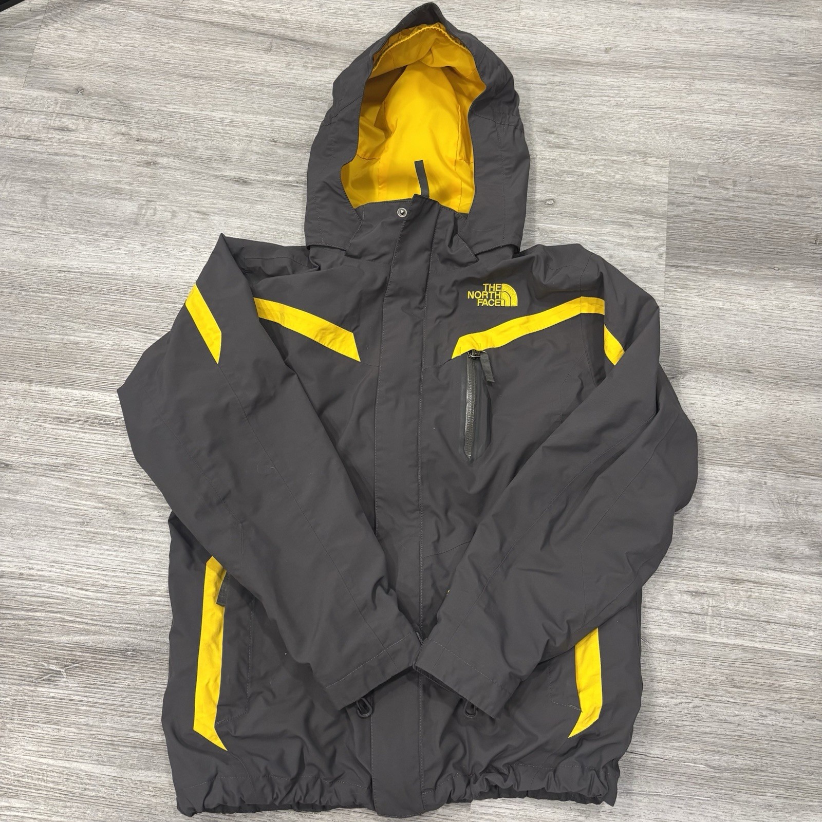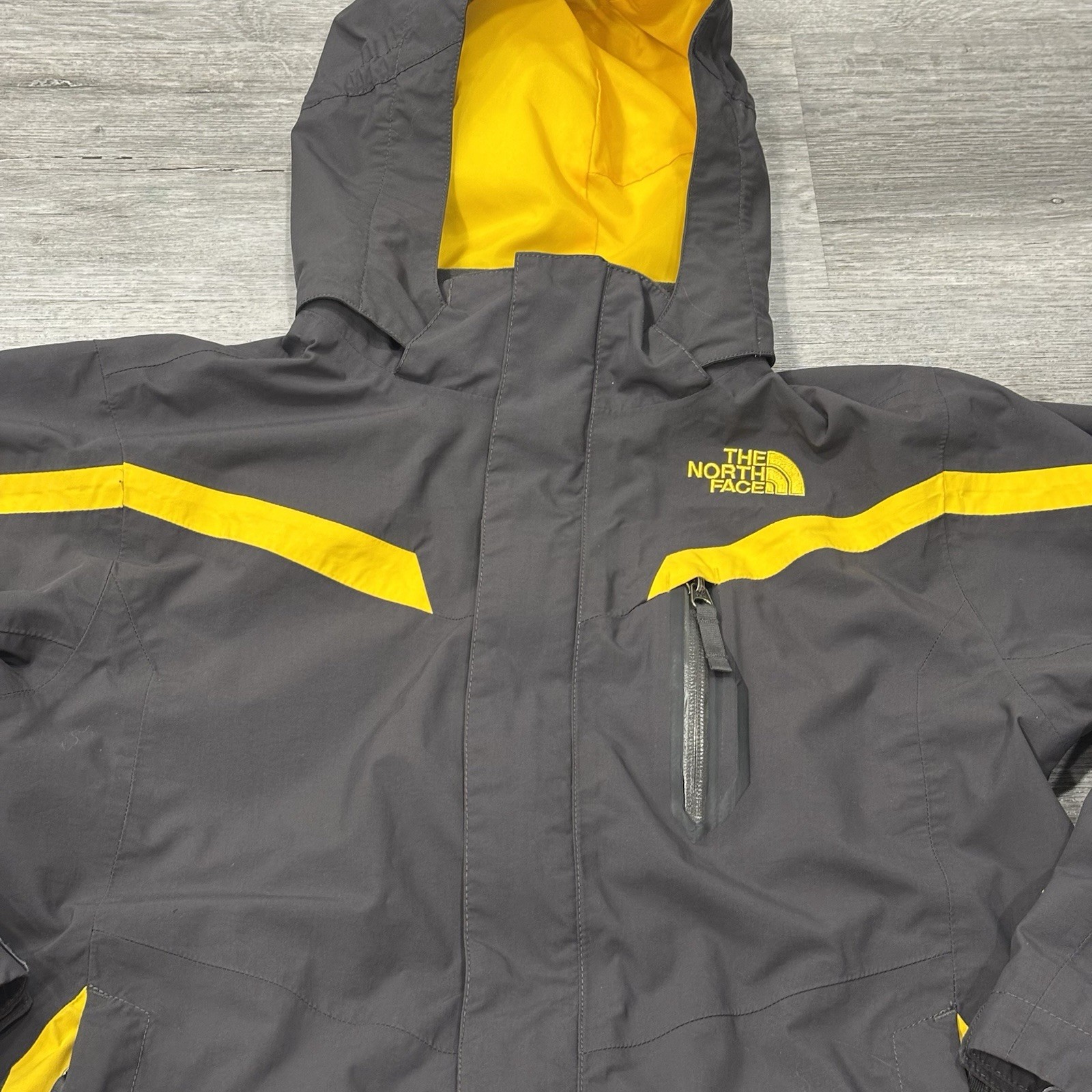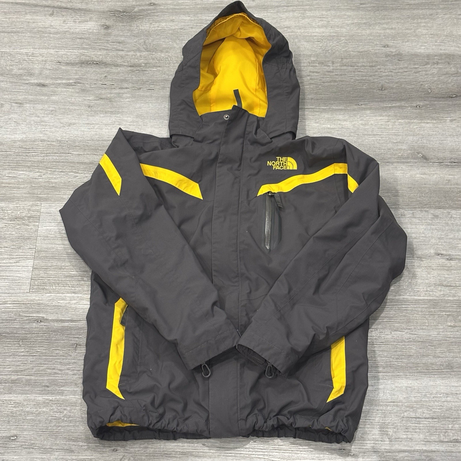 The North Face Boys L 14/16 HyVent Jacket Yellow Grey Full Zip Hooded Coat
