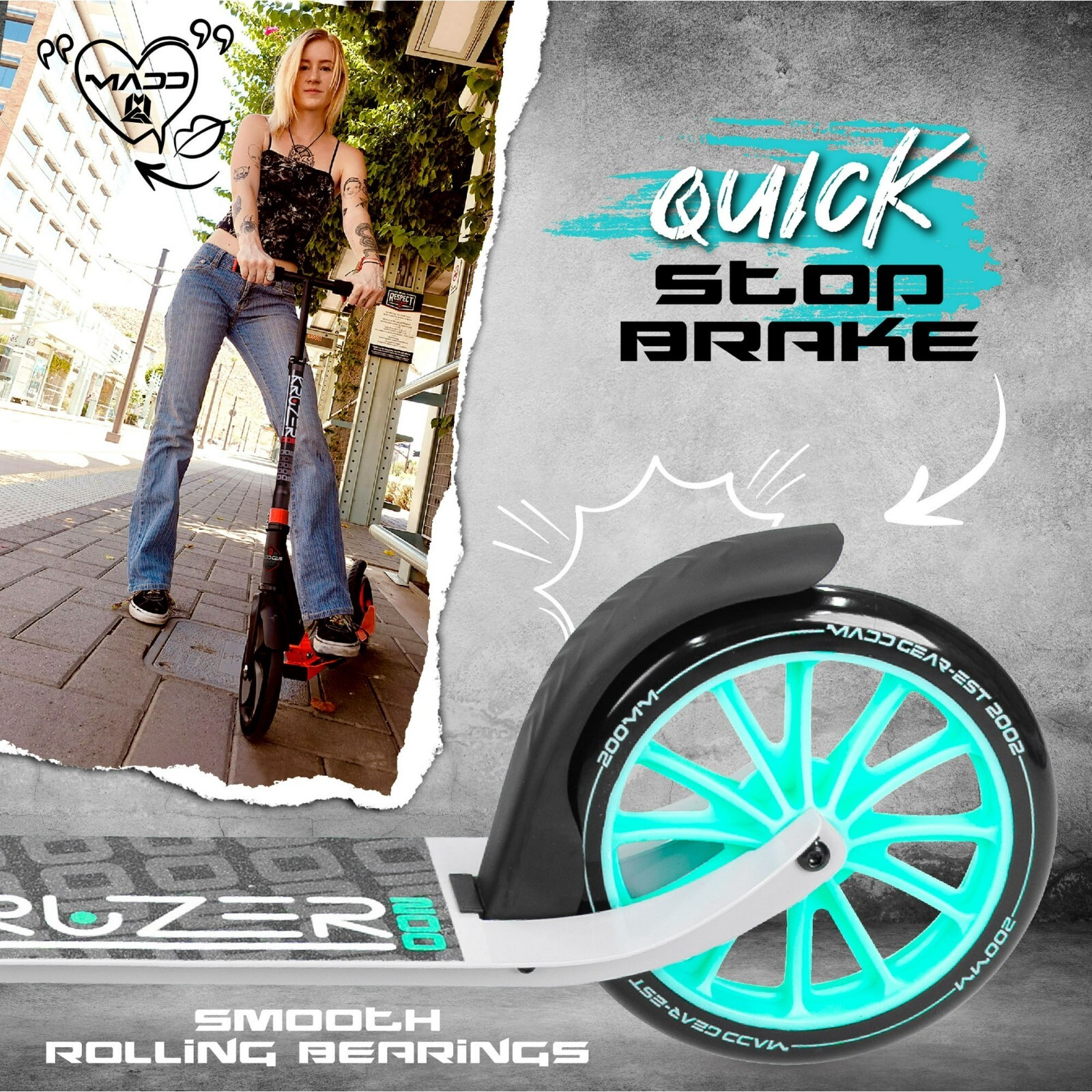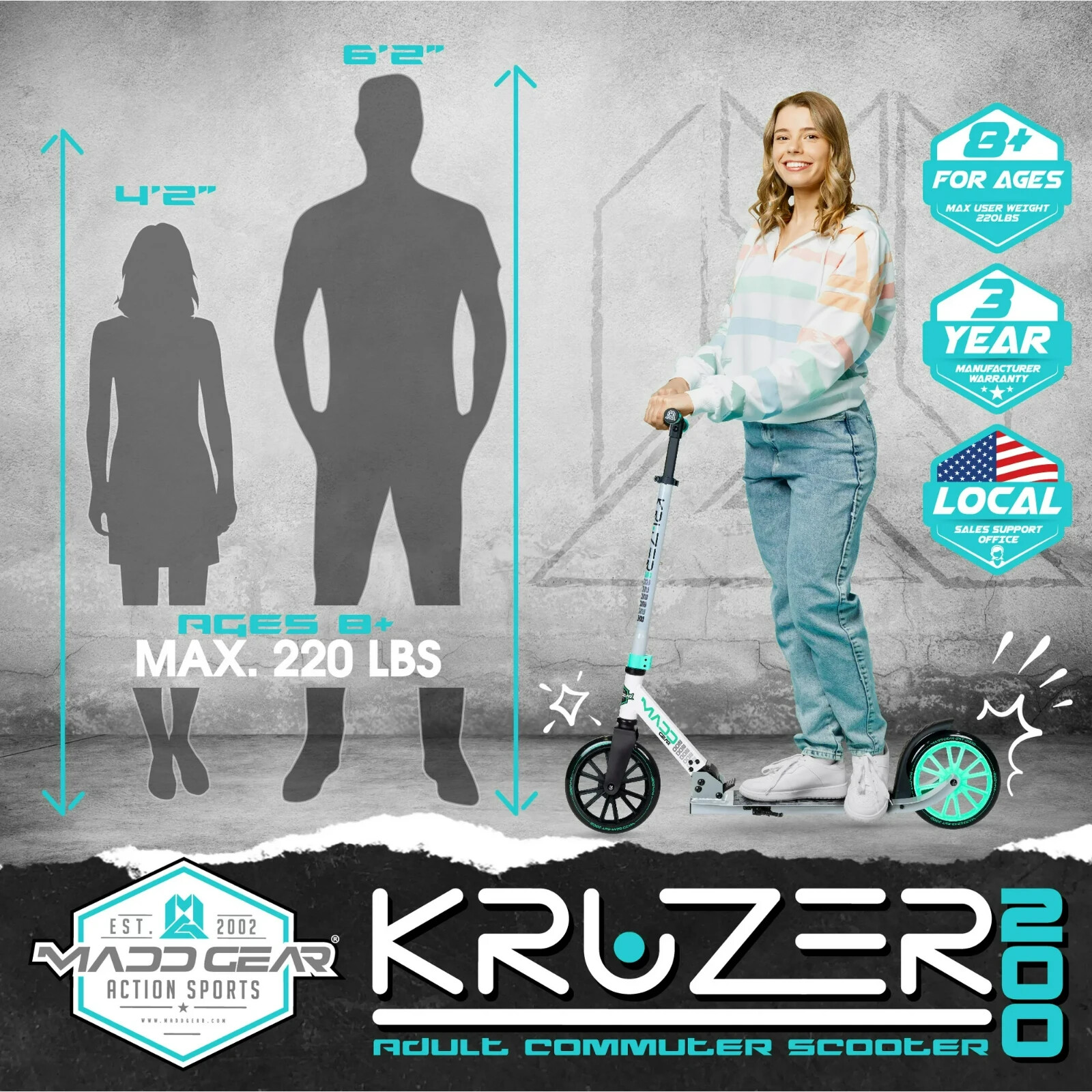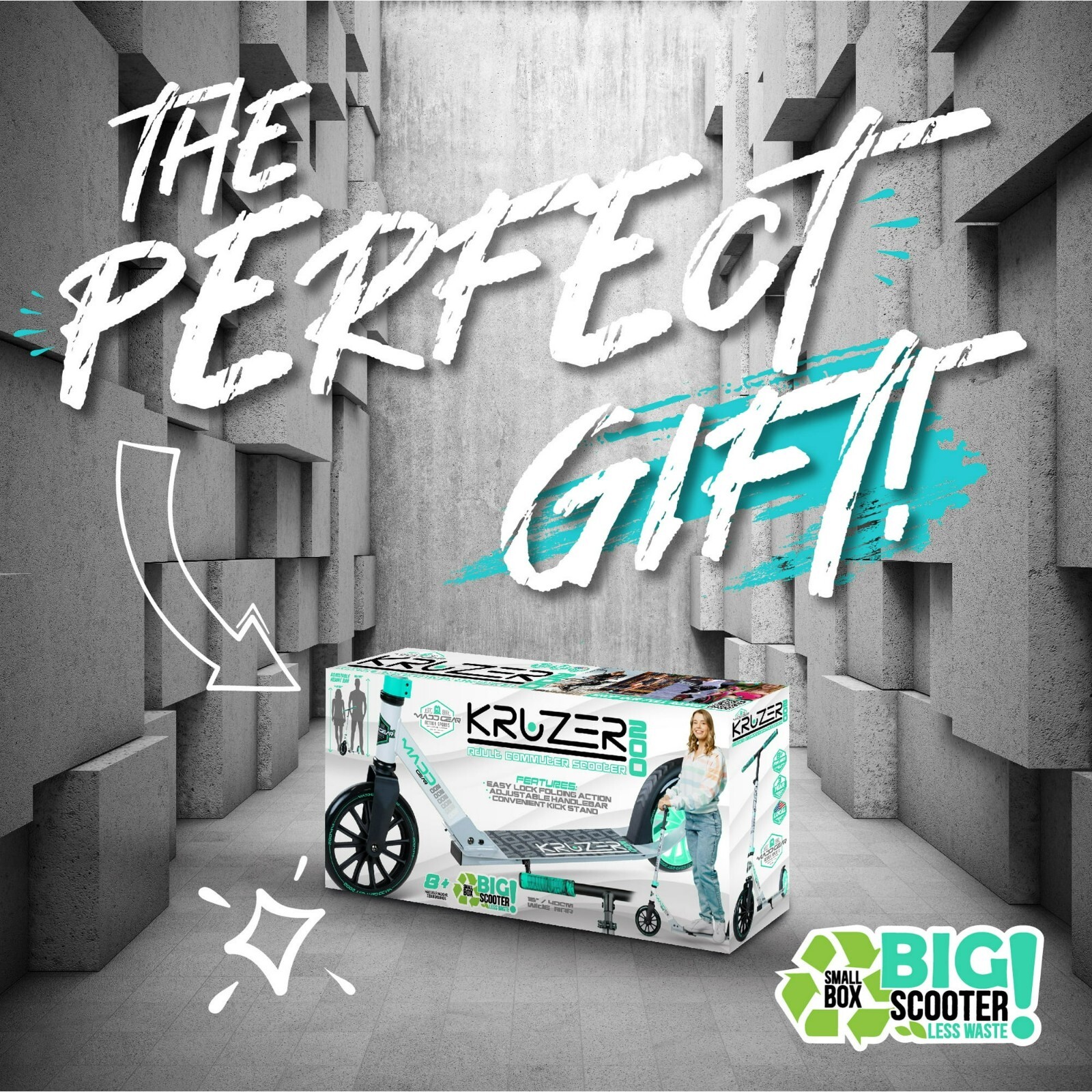 Commuter Kick Scooter -Folding -Height Adjustable for Teens Adults, Teal/Gray