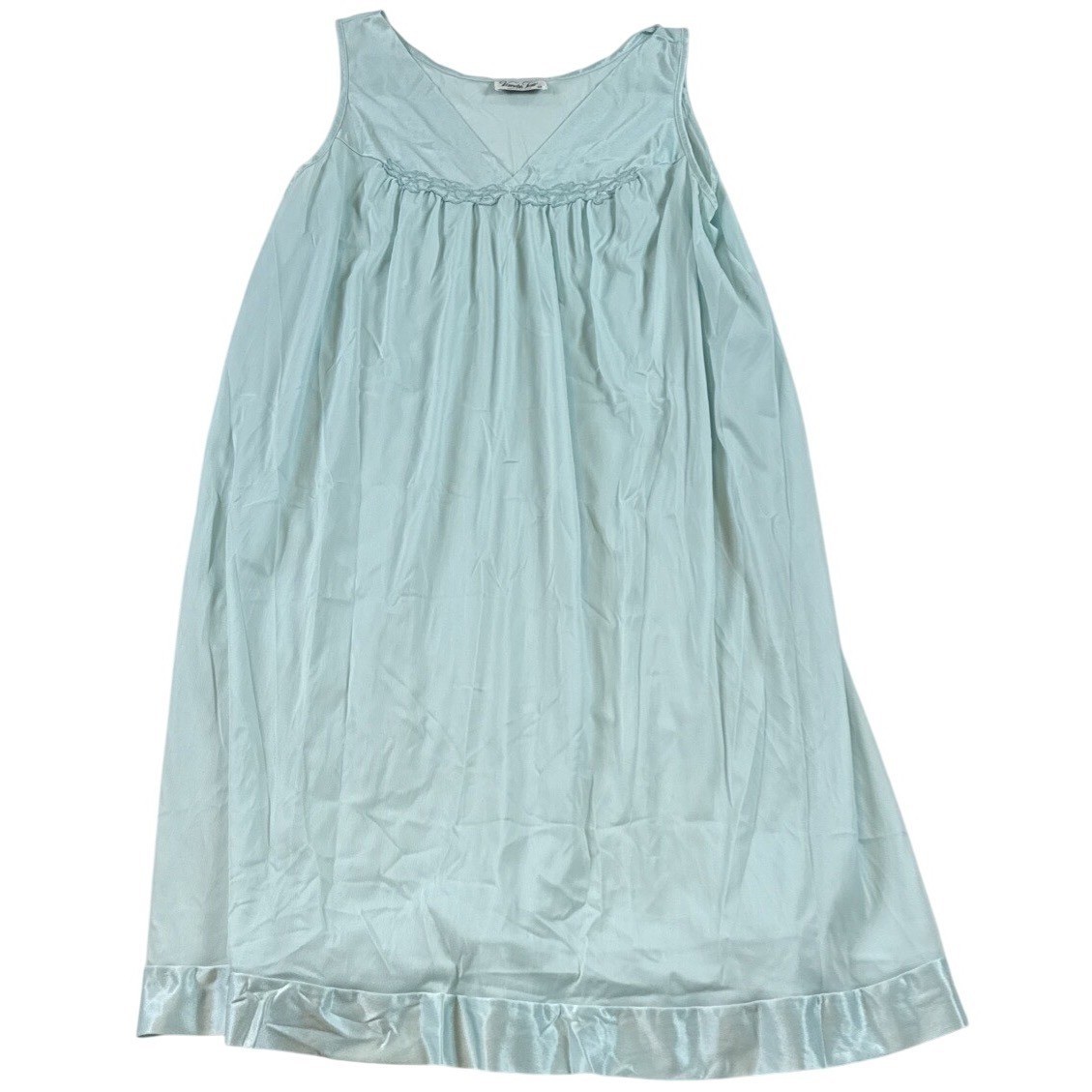 как выглядит Vanity Fair Nightgown Vintage Nylon Light Aqua Sleeveless Lace Trim Medium фото