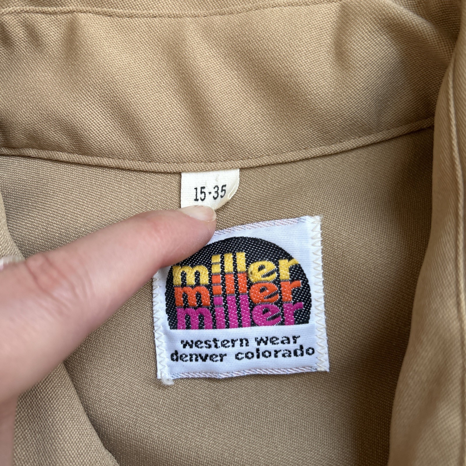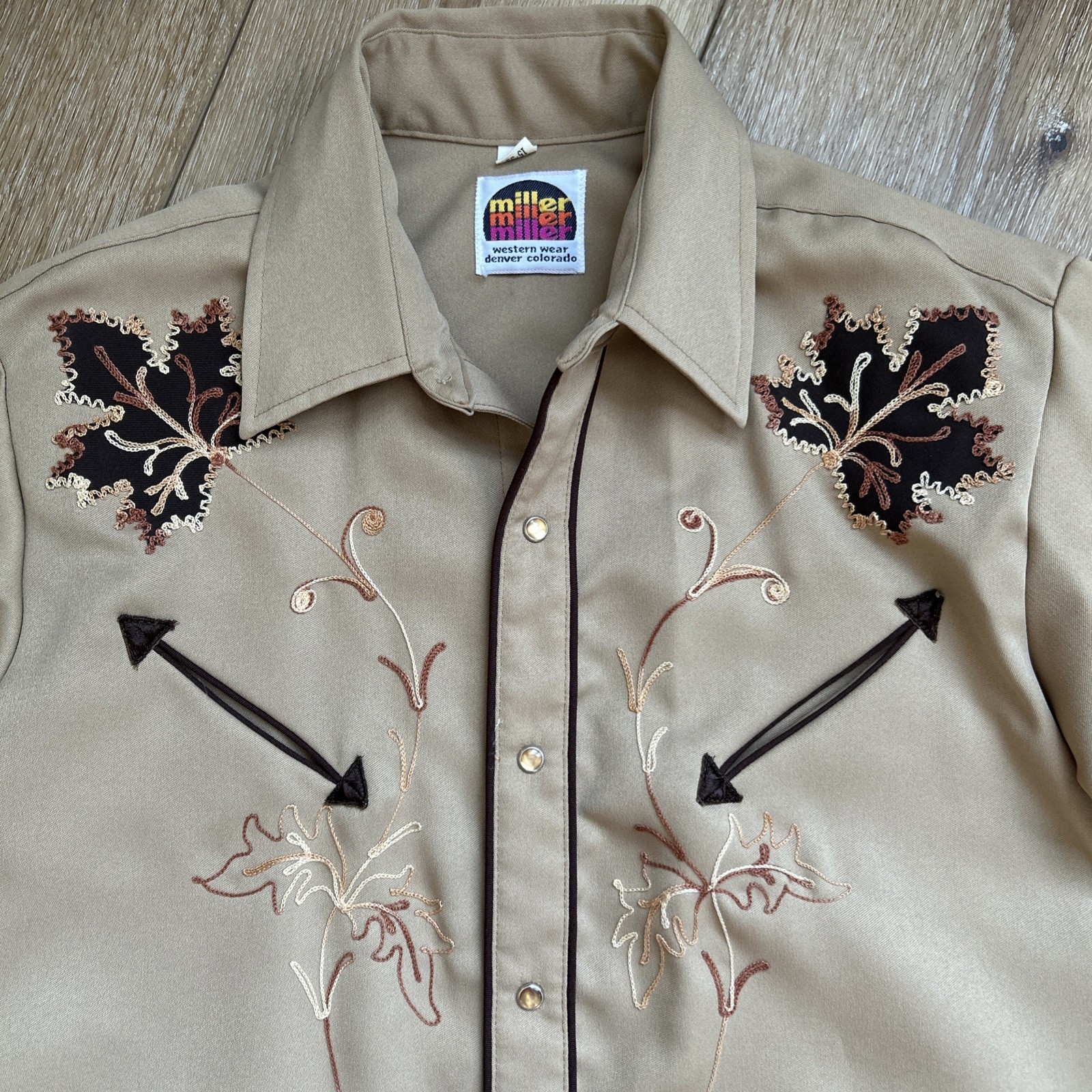 как выглядит Vintage Miller Shirt Men 15-35 Pearl Snap-up Western Embroidery Brown Polyester фото