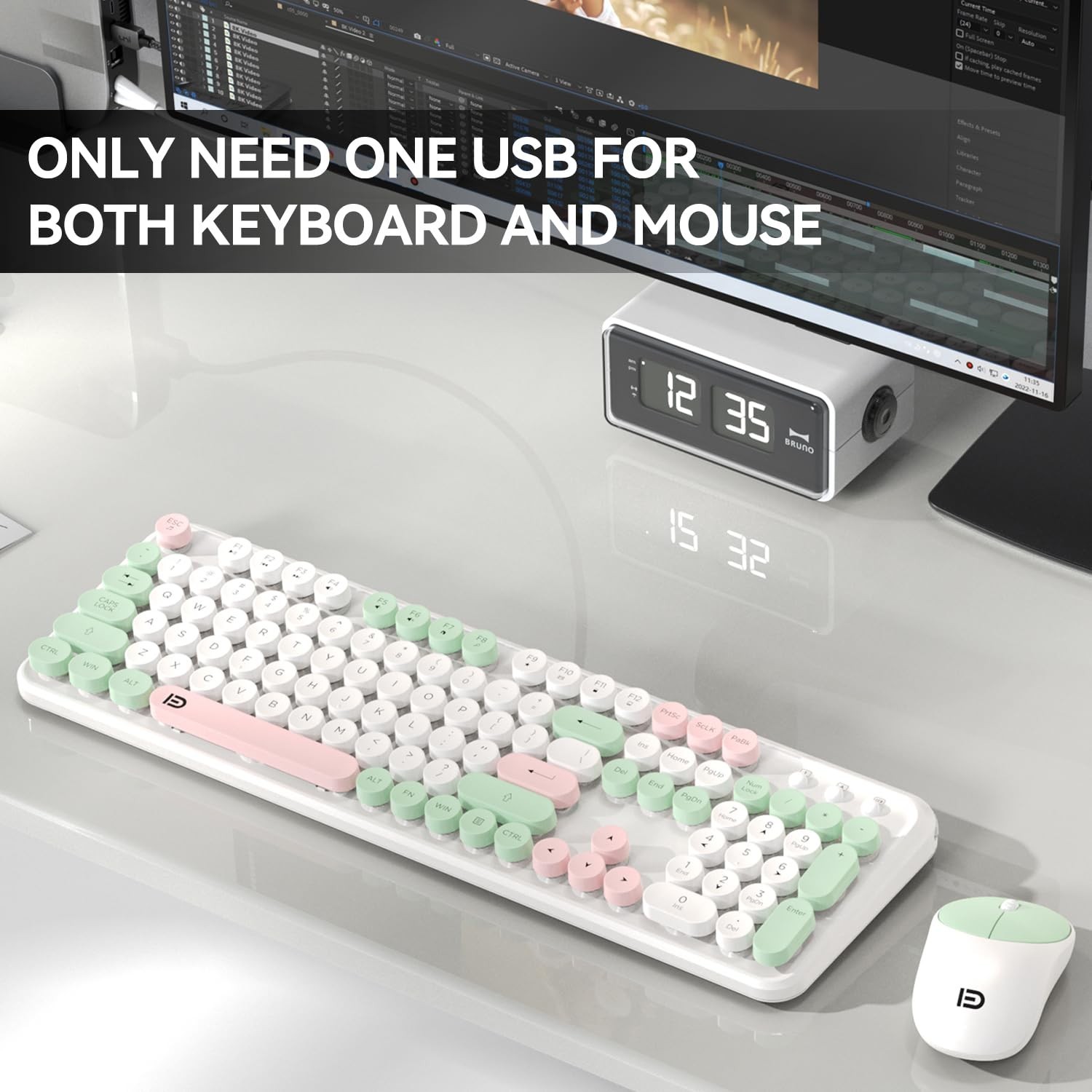 Wireless Keyboard and Mouse Combo, 2.4GHz Colorful Cute Round Keycaps Keyboar...