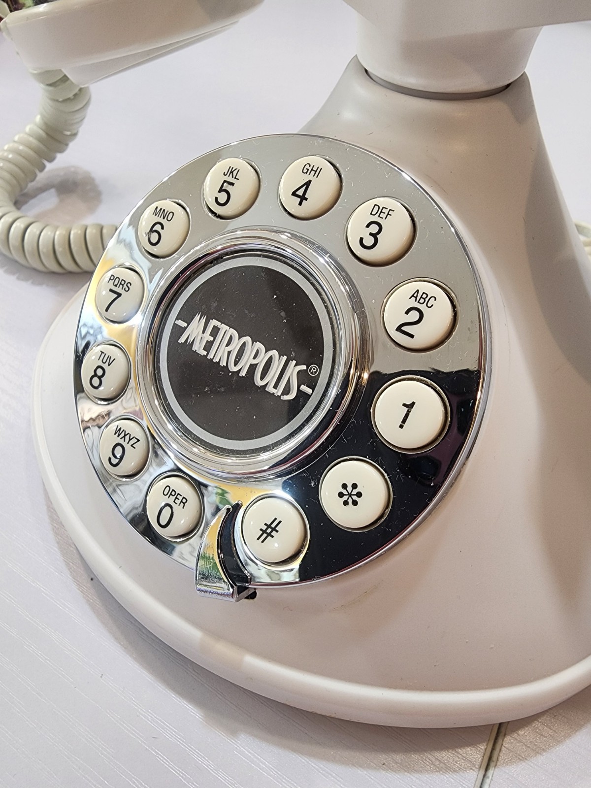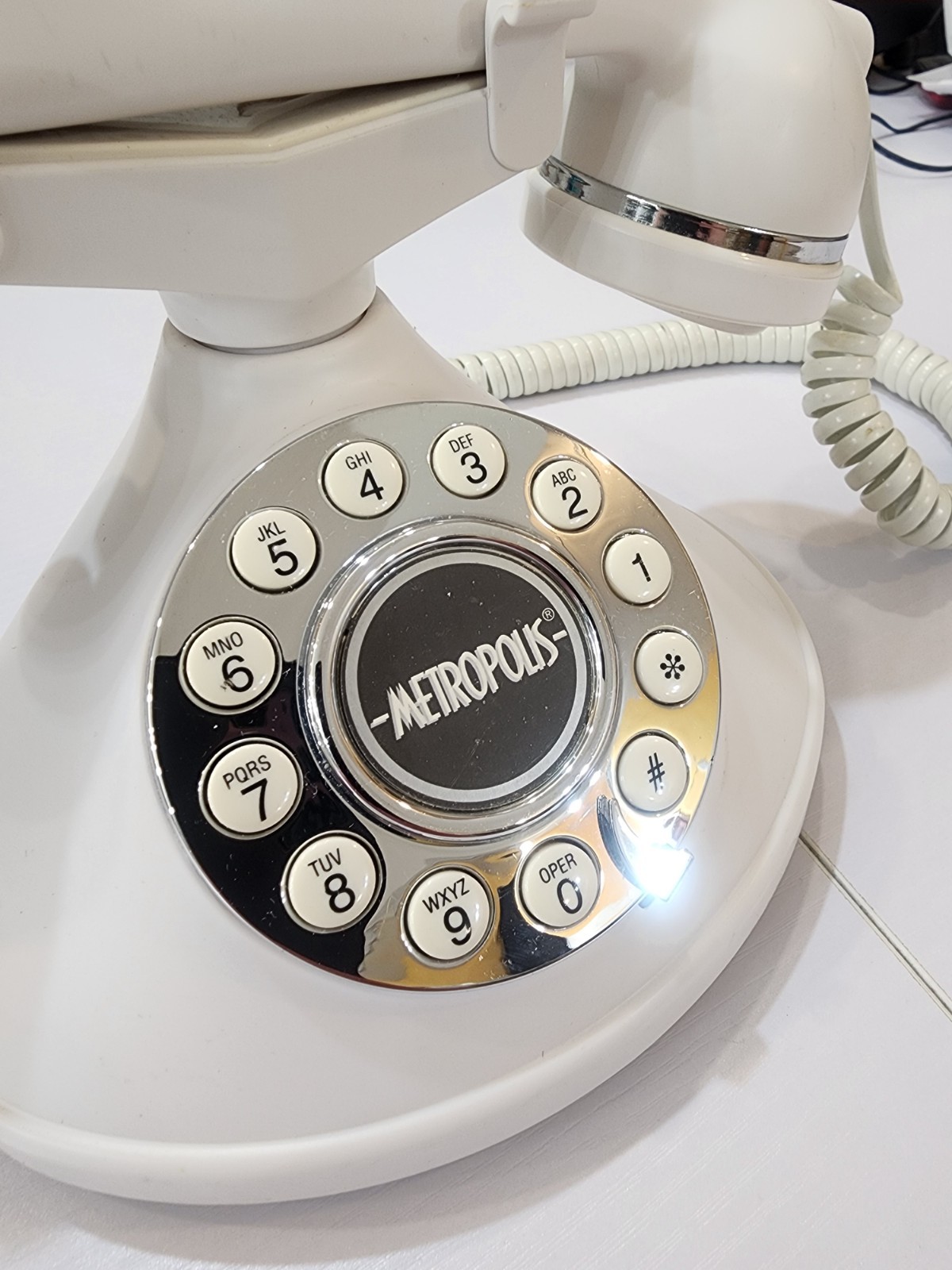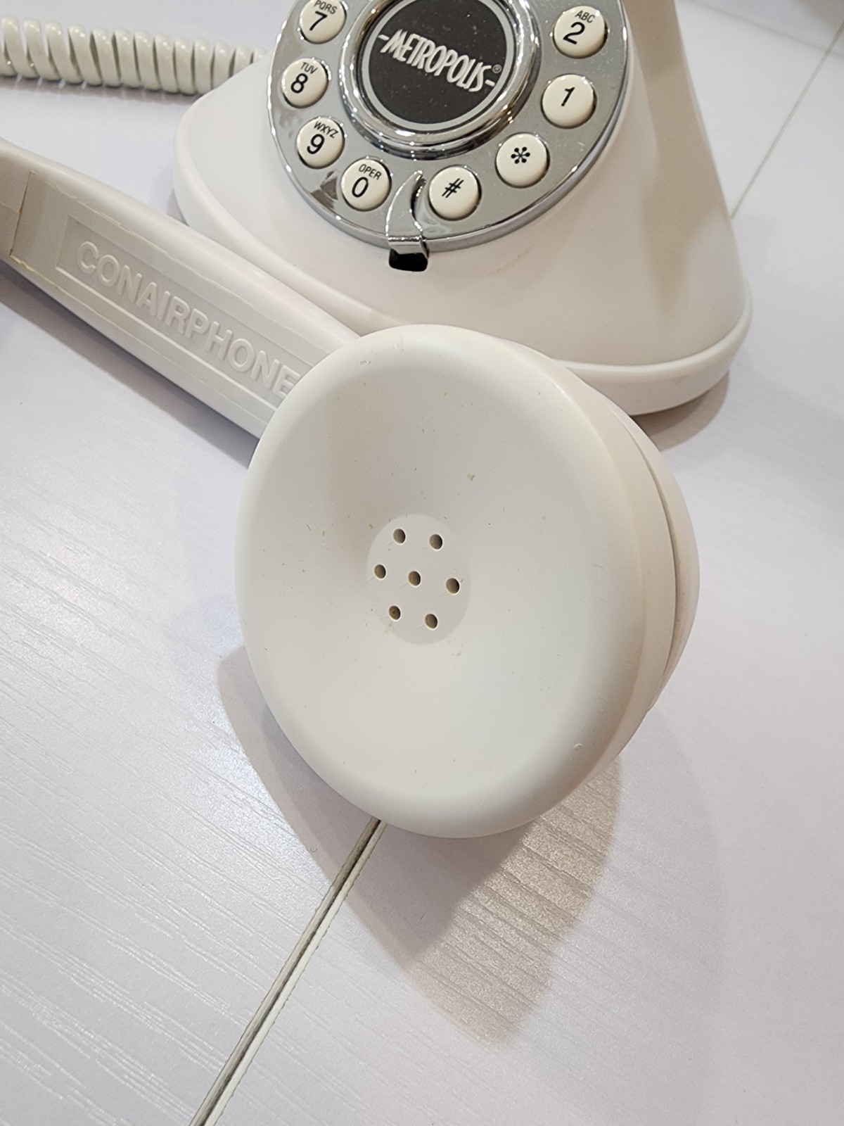 Vintage Metropolis Conair Push Button Phone Satin White Silver SW2505AW