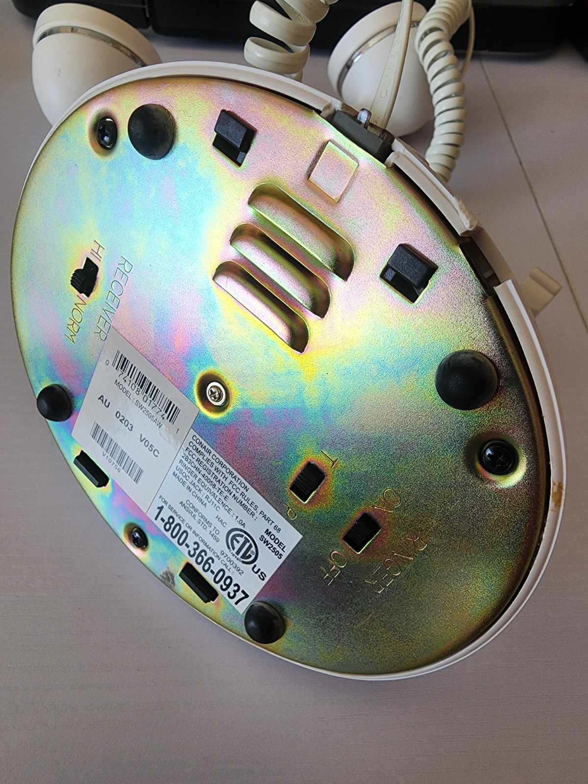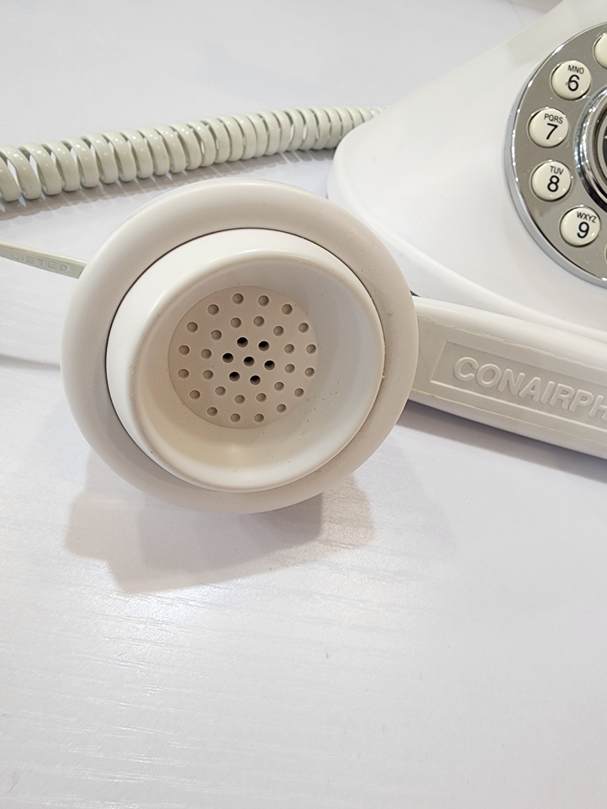 как выглядит Vintage Metropolis Conair Push Button Phone Satin White Silver SW2505AW фото
