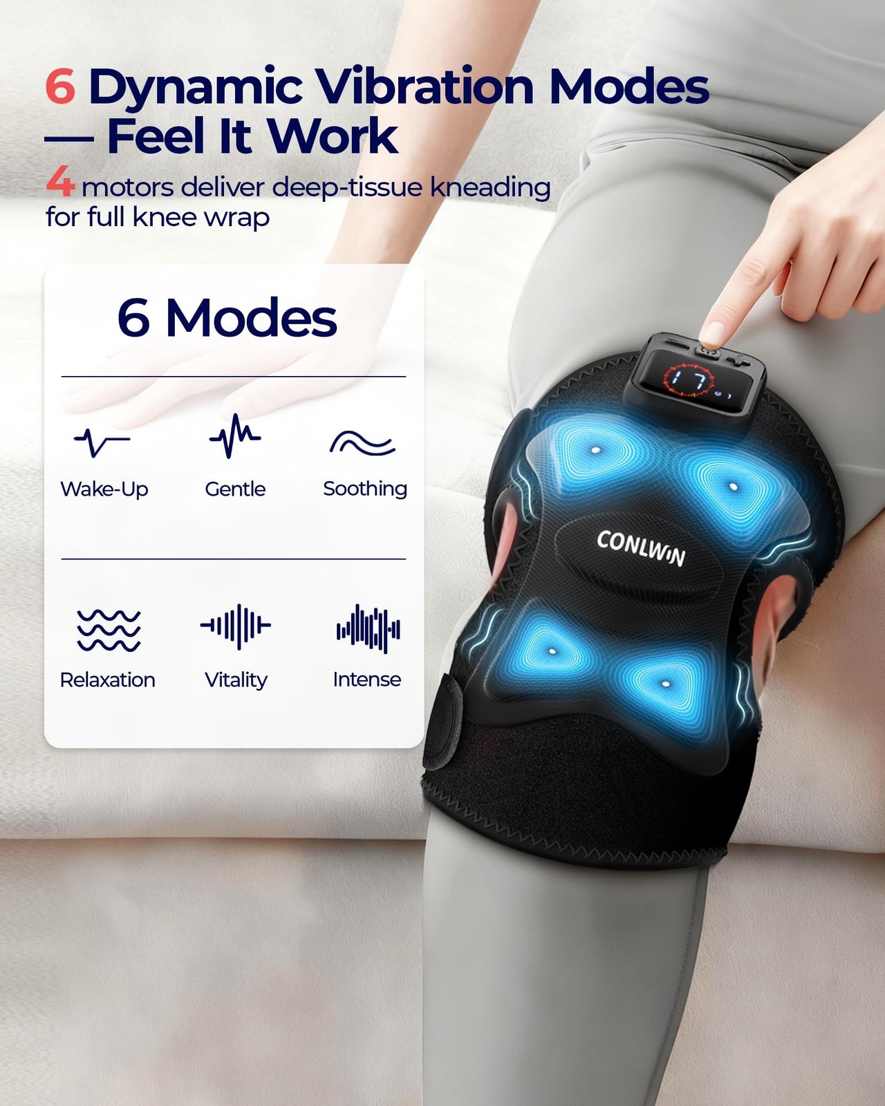 4-in-1 Cordless Knee Massager with Heat and Red Light Therapy for Knees, 6 Vi...