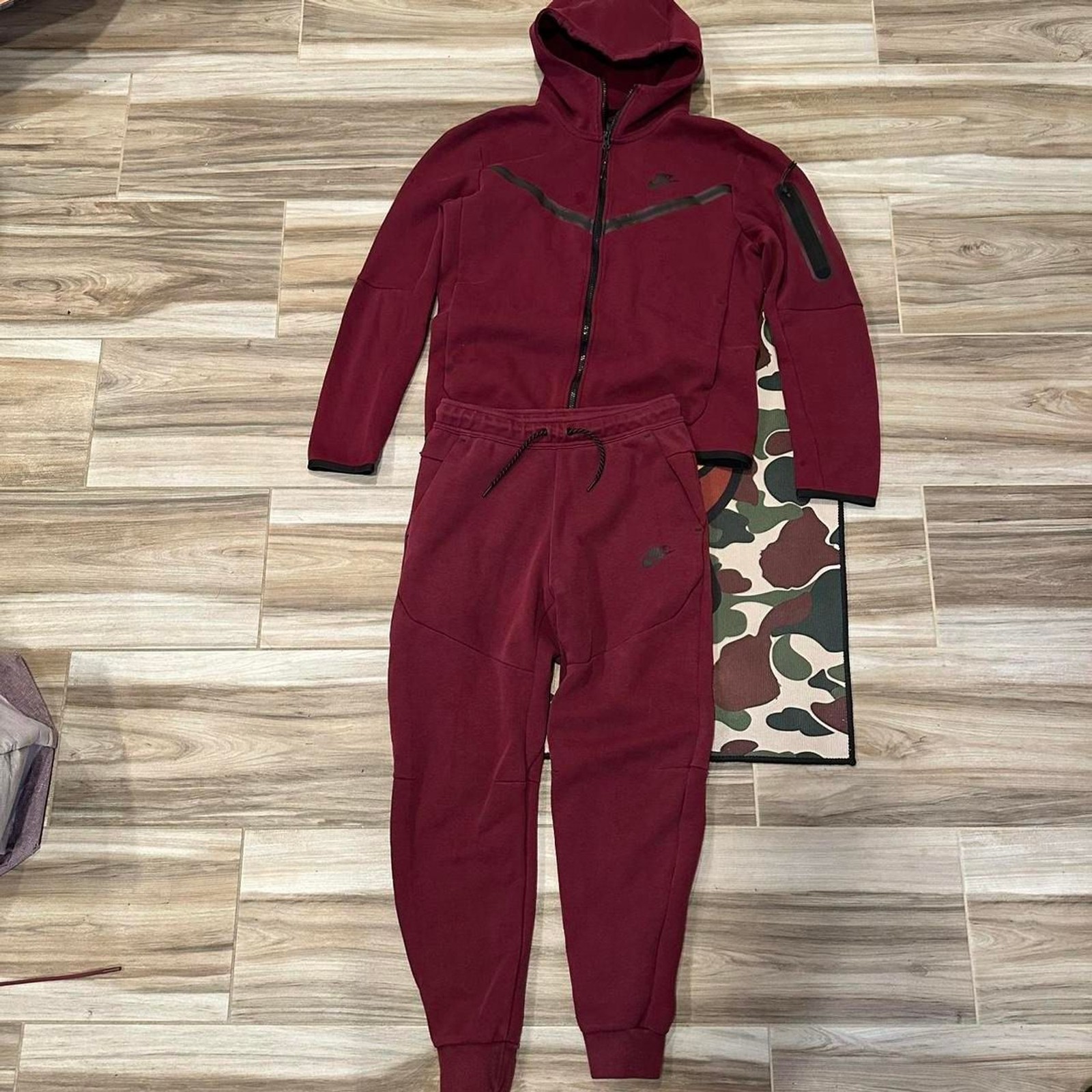 Red Burgundy Nike Tech Fleece Hoodie and Sweatpants Sweatsuit