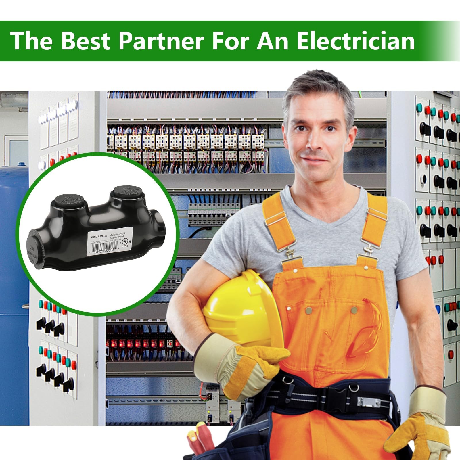 Wengart Insulated Inline Splice Connector,2Pack,Wire Range 2/0-6 Gauge,7/32 ...