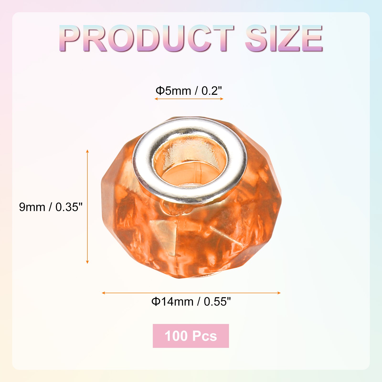 100Pcs 14mm Large Hole Acrylic Beads Orange European Loose Faceted Bead