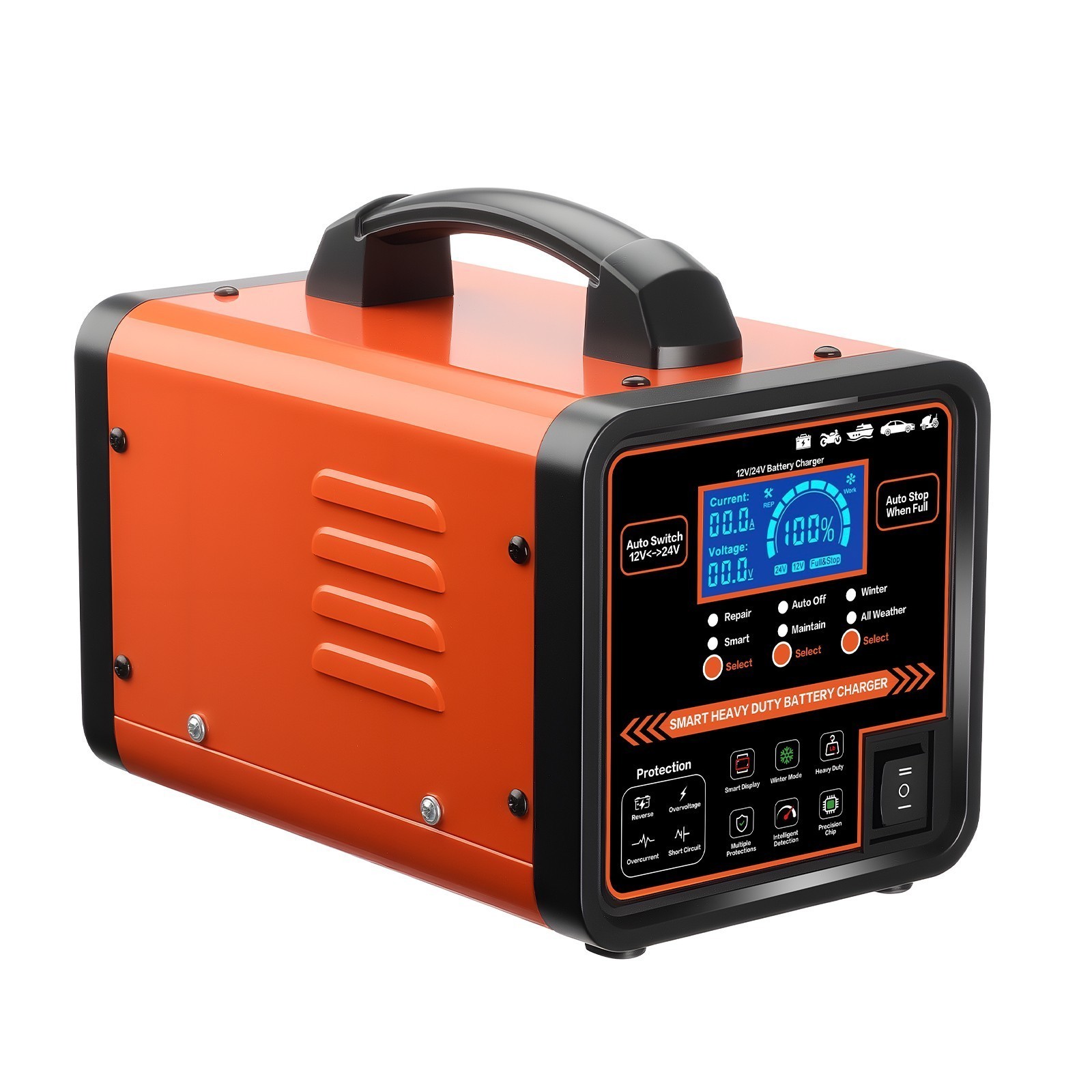 12V 24V Car Battery Charger Heavy Duty, 0-15A Automatic Battery Maintainer NEW