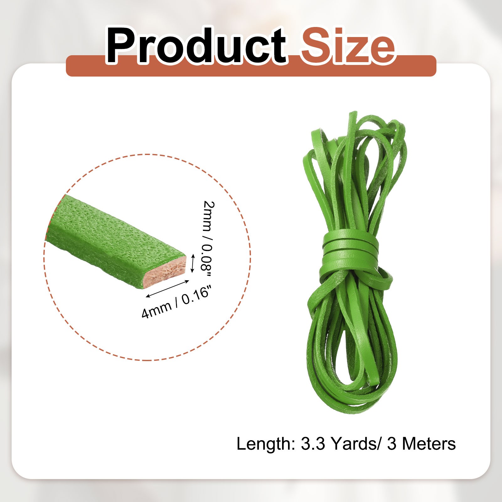 Flat Leather Cord, 3.3 Yard 4mm Leather String Strips for DIY Crafts Grass Green