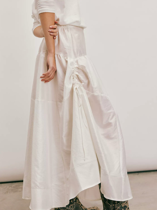 как выглядит NEW FREE PEOPLE EGGNOG WHITE EMERY DROP WAIST MIDI SKIRT SZ S фото