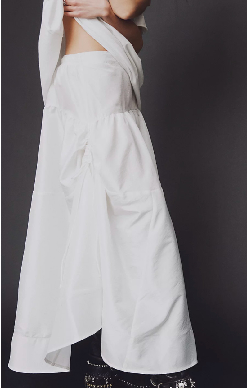 NEW FREE PEOPLE EGGNOG WHITE EMERY DROP WAIST MIDI SKIRT SZ S
