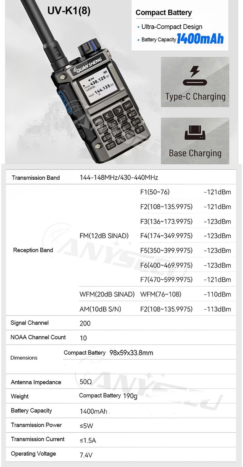 Quansheng UV-K1 8 Air Band Walkie Talkie Wireless Frequency Copy UHF VHF Radio