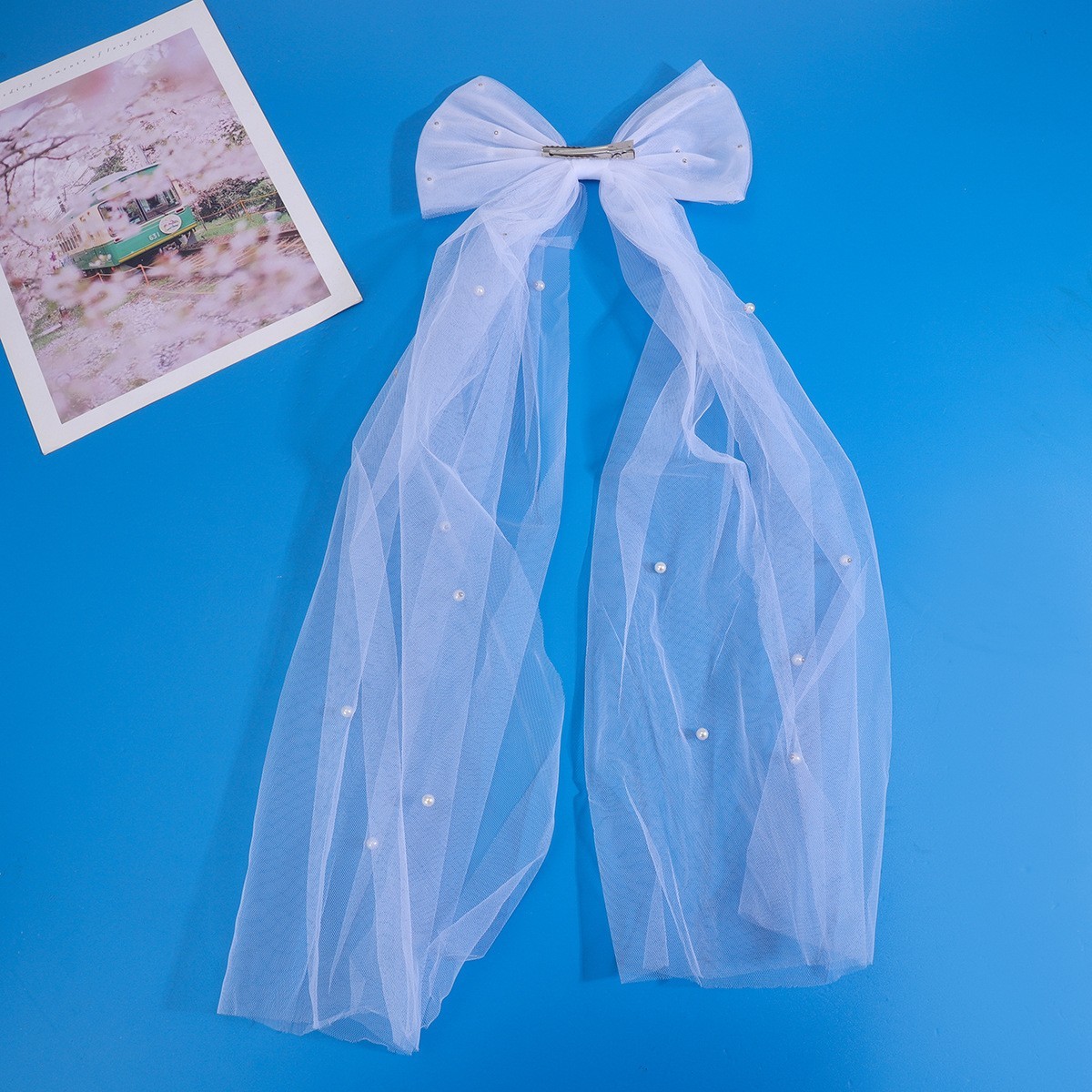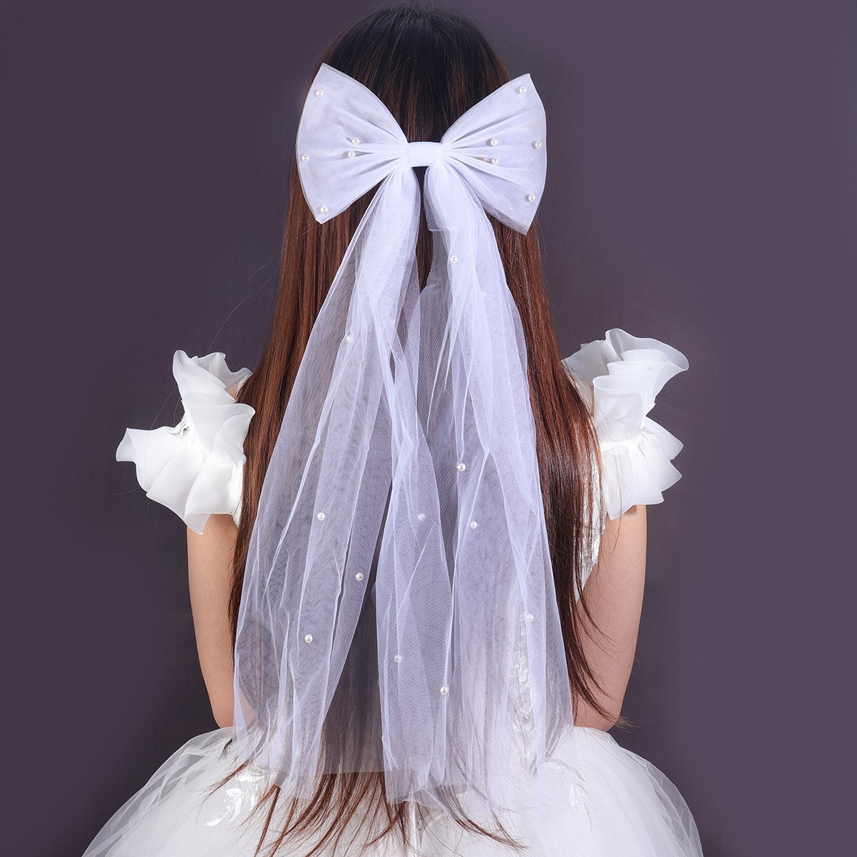 Wedding Veils with Bow One Size Bridal Accessories White Pearls Tulle Veils