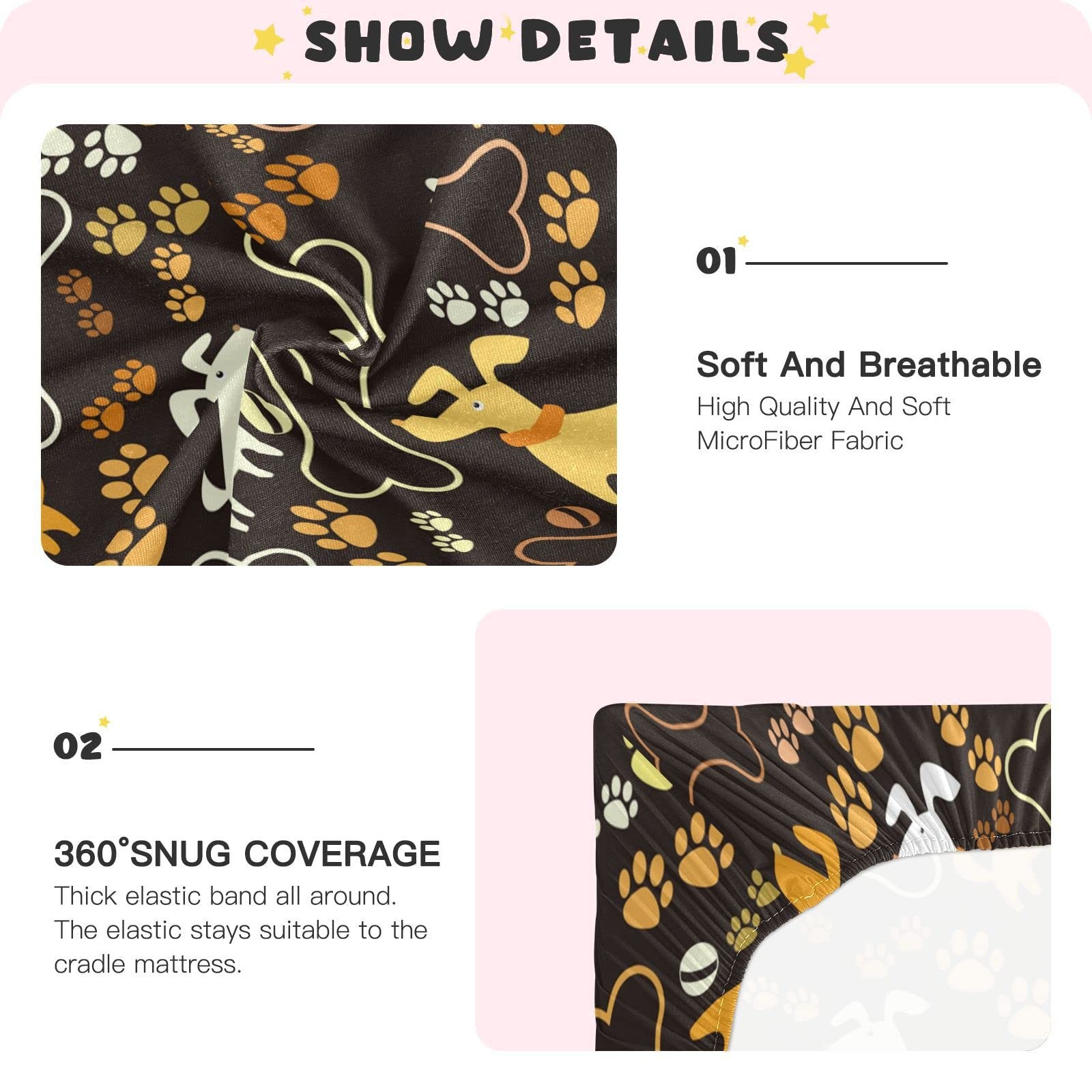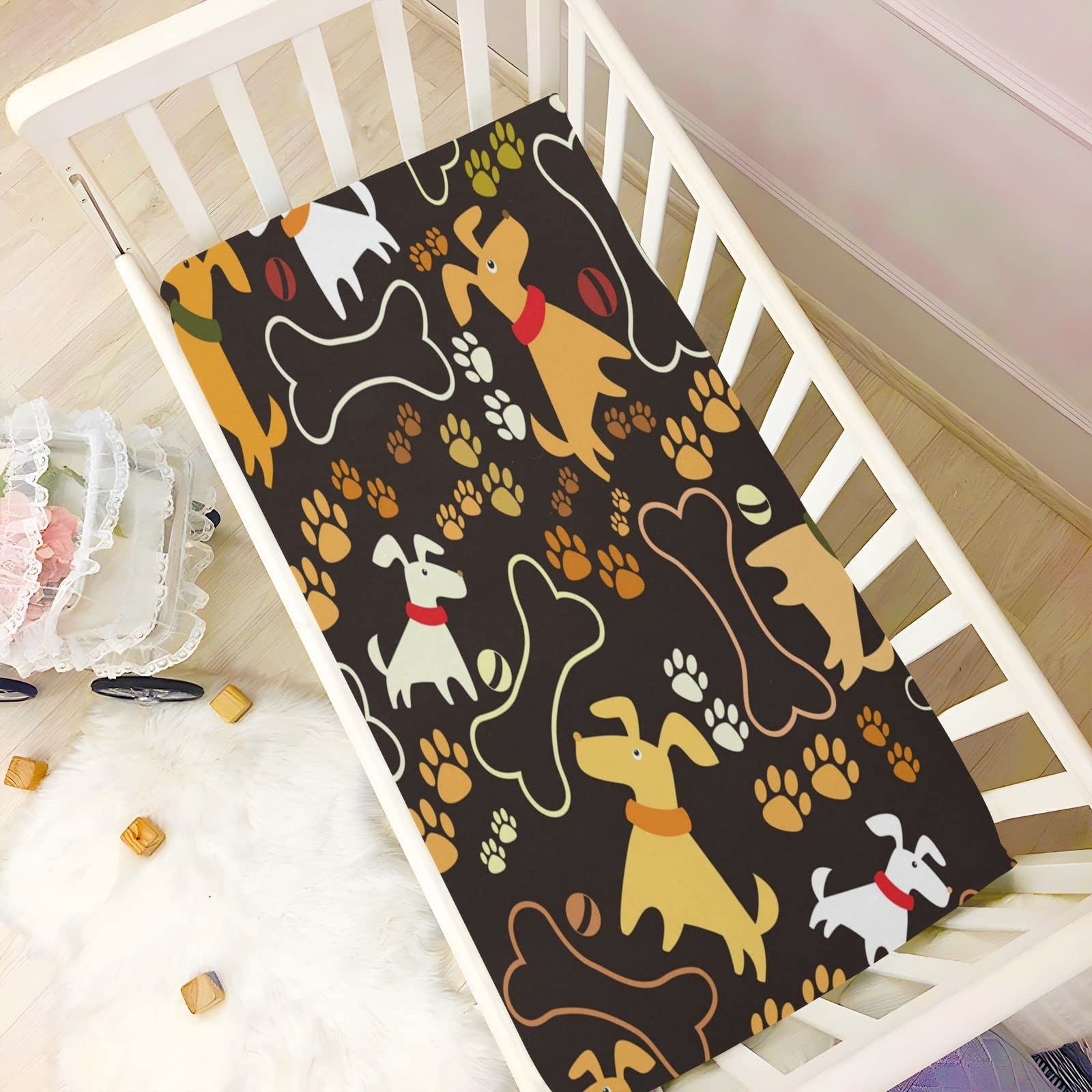 Fitted Crib Sheet Cute Cartoon Dog Paw Bone Baby Sheets for Standard Crib Tod...