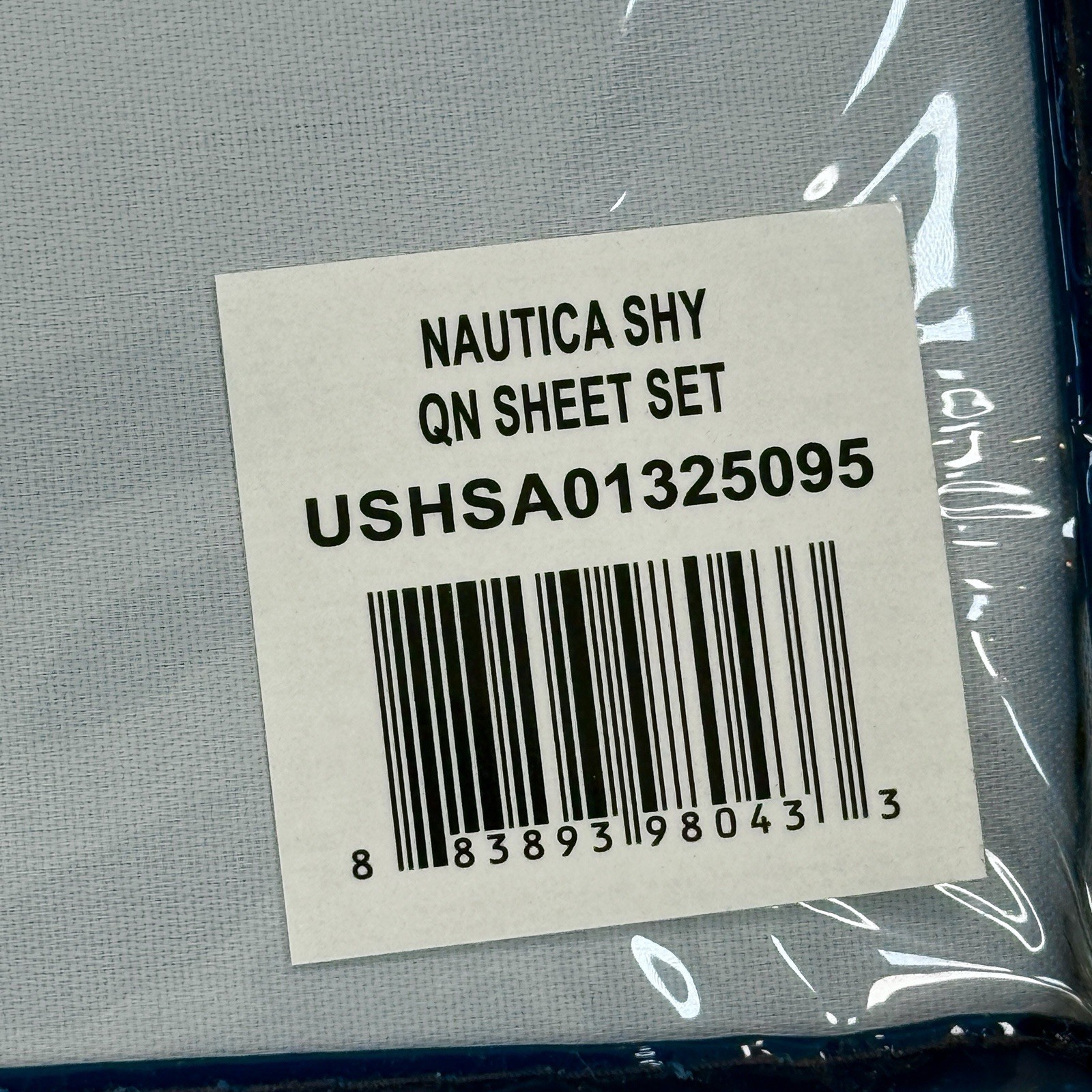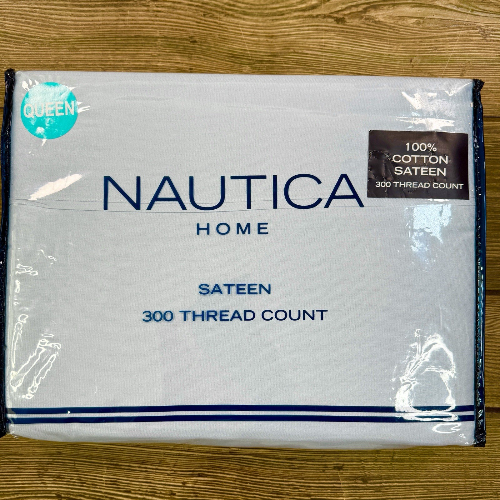 Nautica 4-Piece Queen Sheet Set 100 Cotton 300 Thread Count Solid Blue NEW