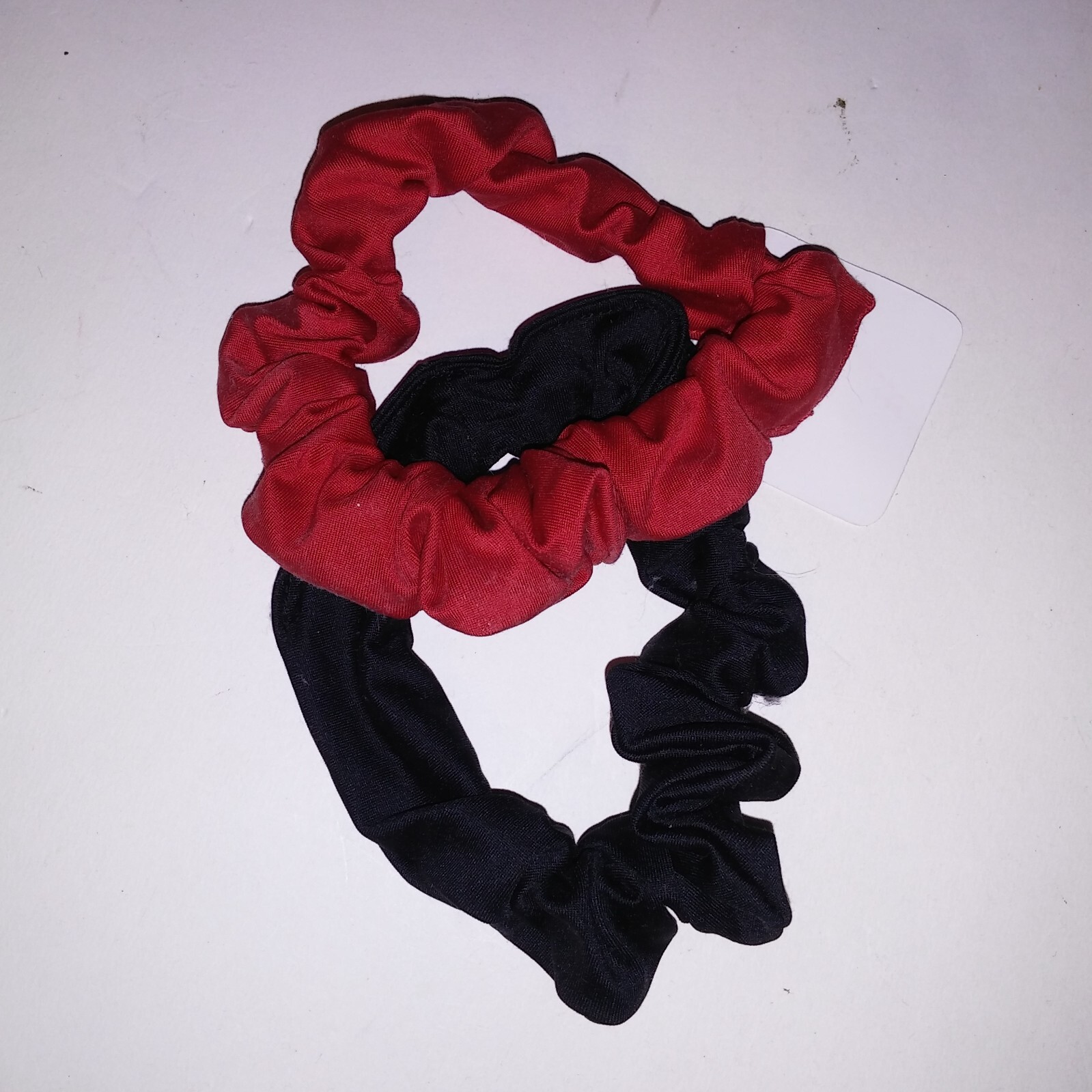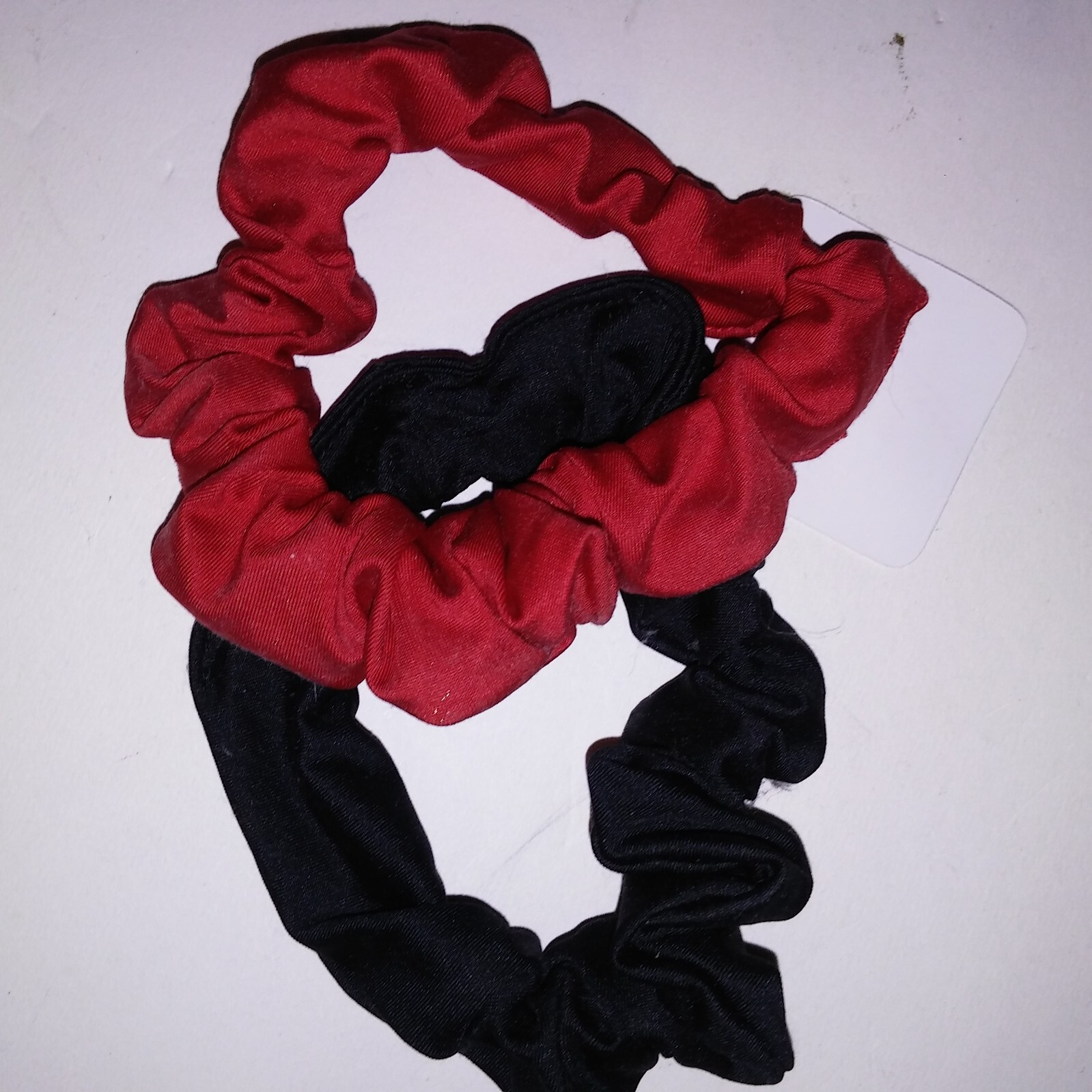 как выглядит Set of 2 Scrunchies Hair Ties Red Black Solid New фото