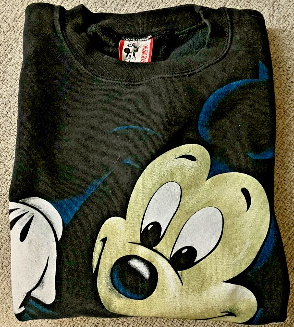 как выглядит Vtg DISNEY DESIGNS sweatshirt Black Small AOP 90