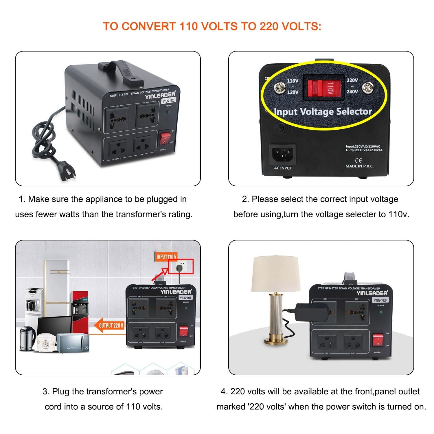 1000W Voltage Converter Transformer110V to 220V OR 220V to 110V 1000 Watt Ste...