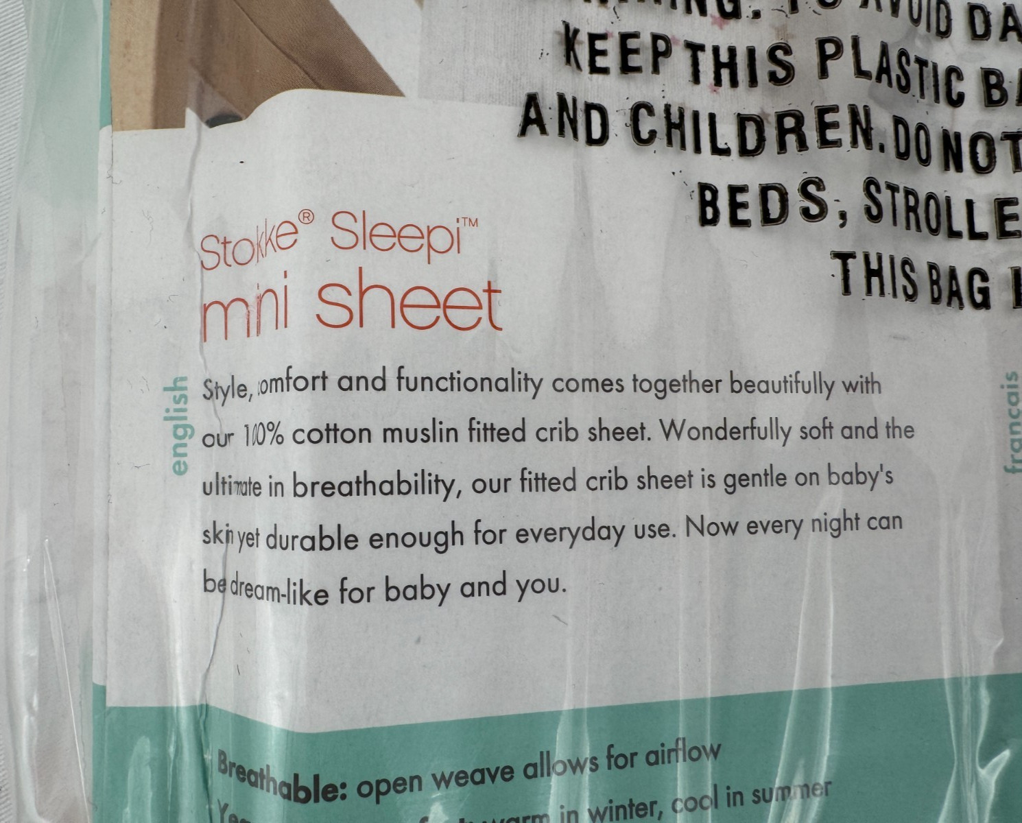 как выглядит NIB Stokke Sleepi Mini 100 Cotton Muslin Fitted Crib Sheet Night Sky 18 X 26" фото