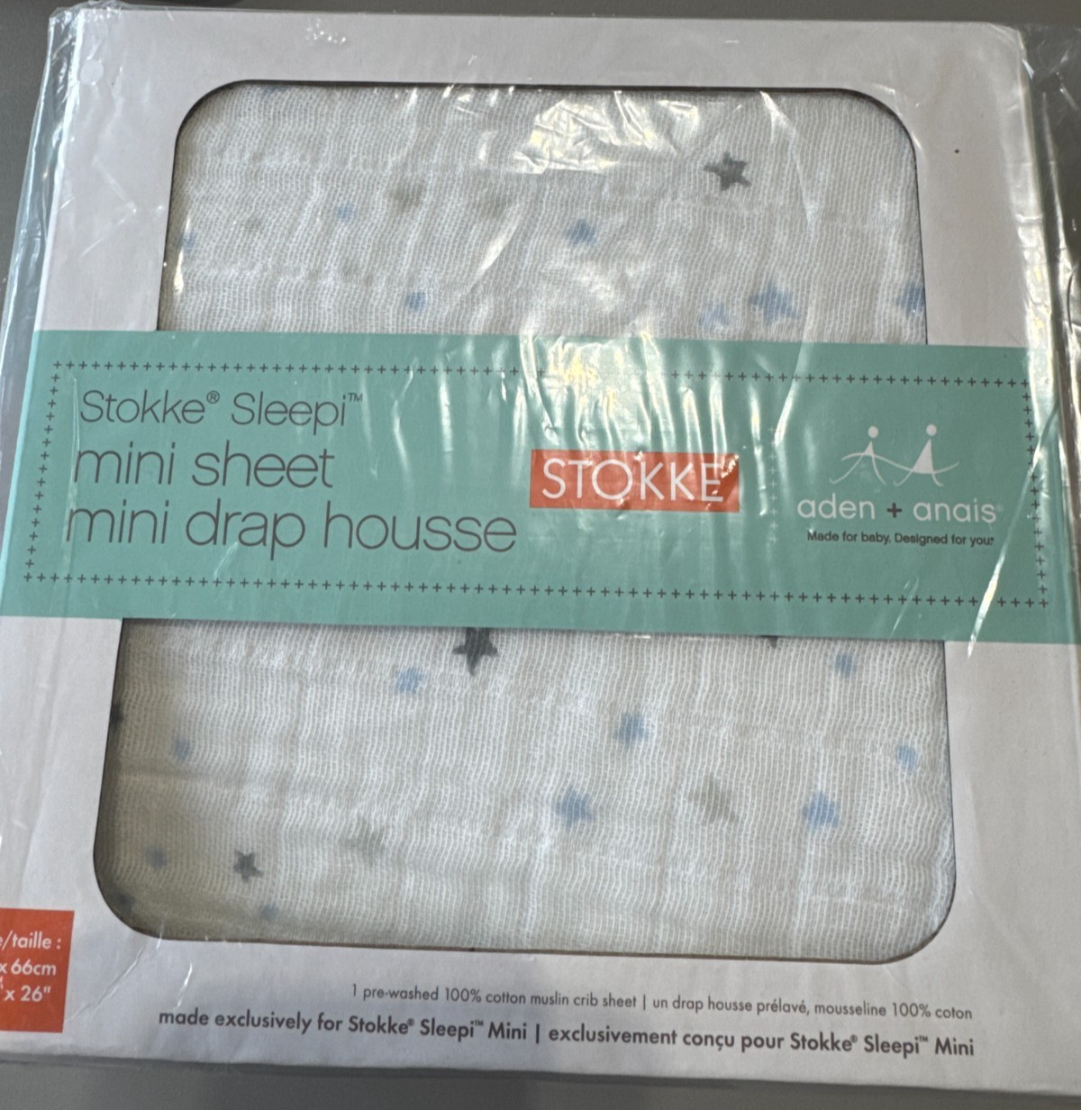 NIB Stokke Sleepi Mini 100 Cotton Muslin Fitted Crib Sheet Night Sky 18' X 26