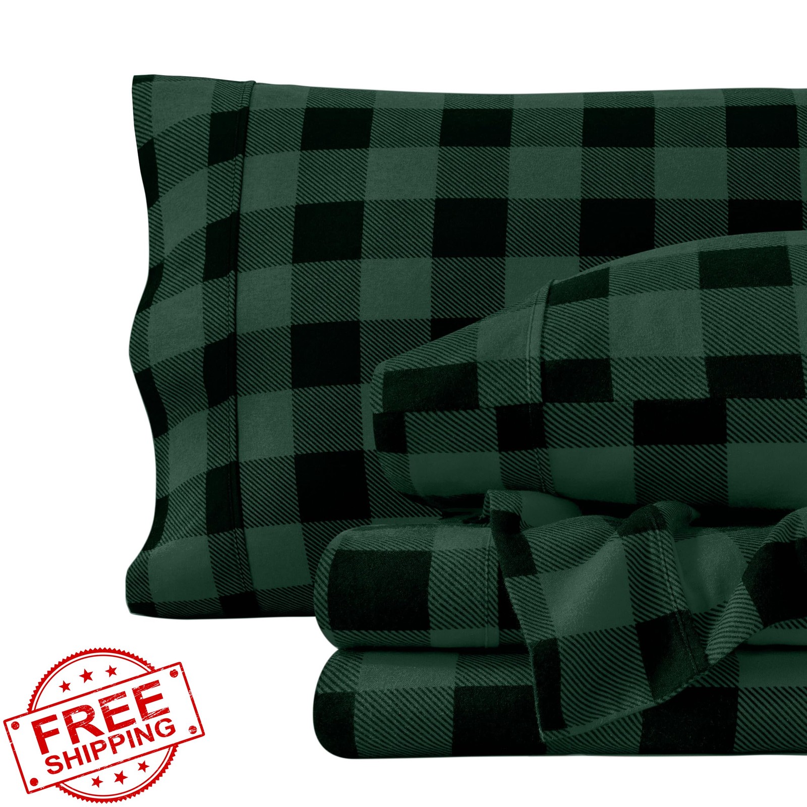 Bare Home Twin Flannel Sheet Set Buffalo Plaid Green Black 100 Cotton
