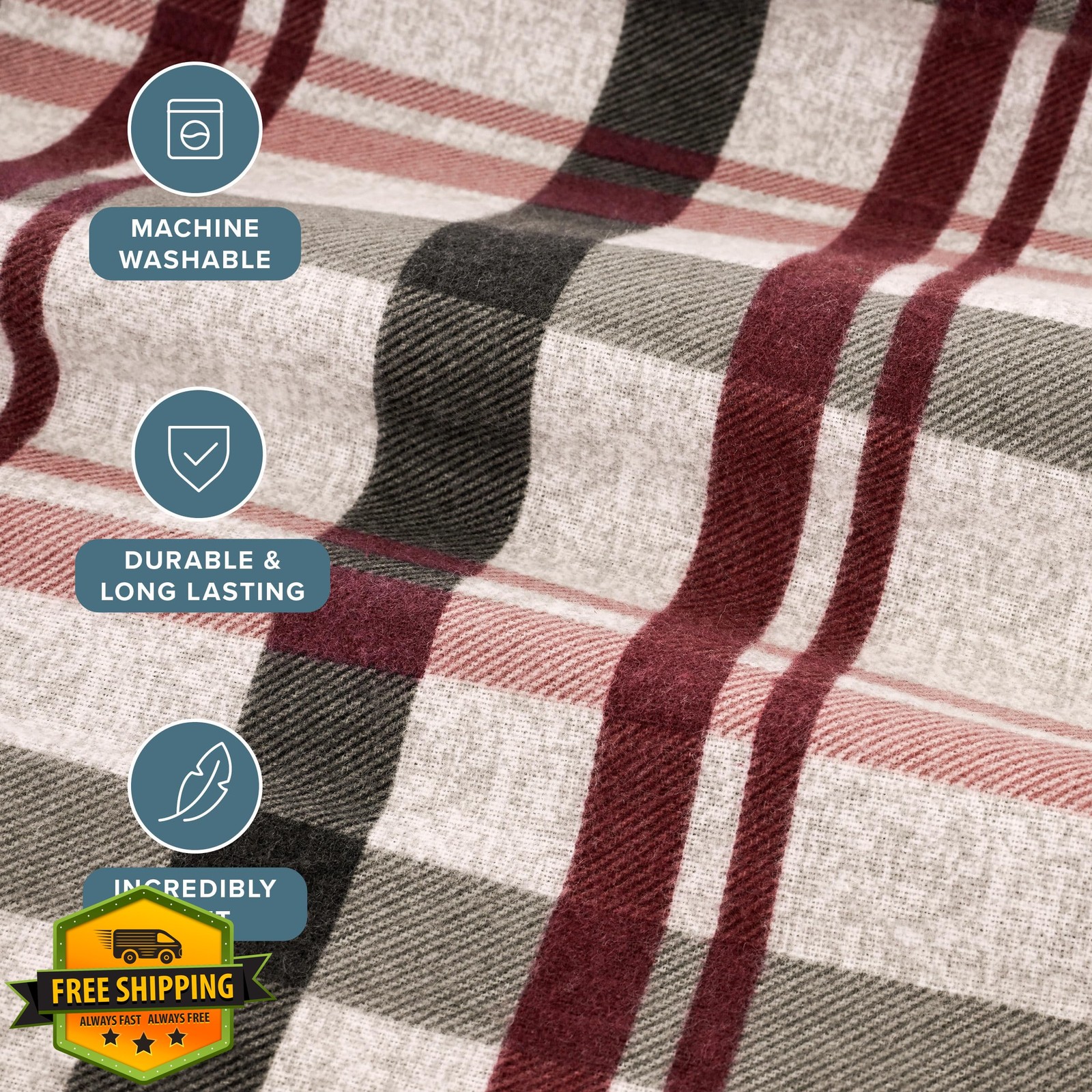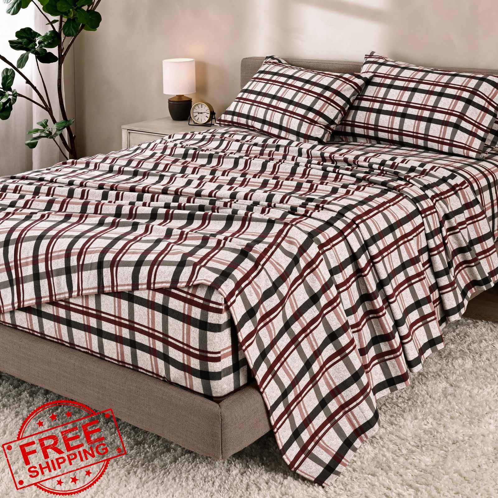 Bare Home Twin XL Cotton Flannel Sheet Set, Nordic Plaid, Deep Pocket