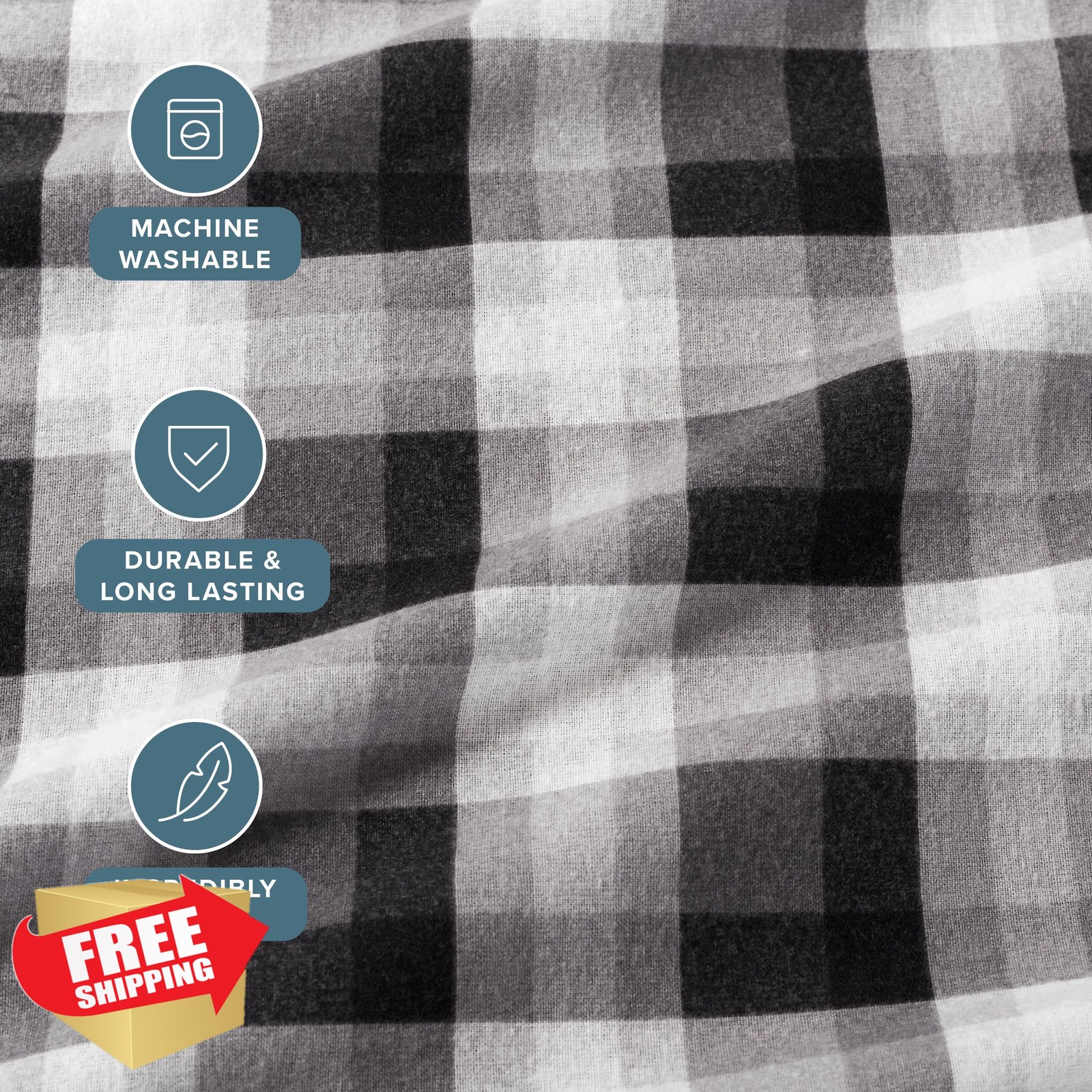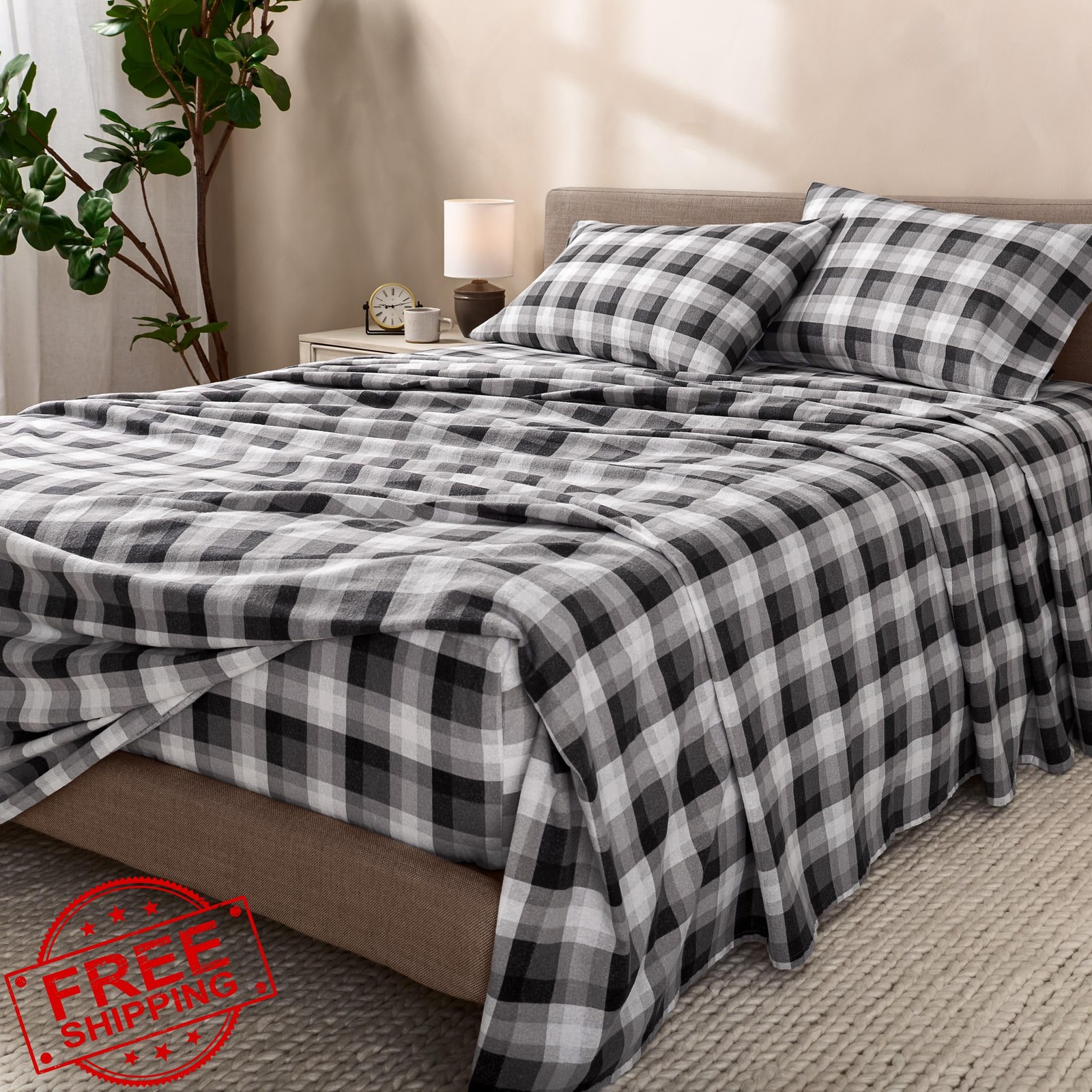 Bare Home Twin XL Flannel Sheet Set, Oliver Plaid Grey, Deep Pocket
