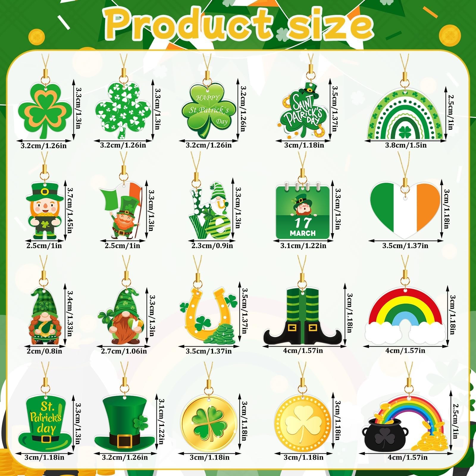 как выглядит 36PCS Acrylic St Patricks Day Ornaments Double Side Design St Patricks Mini Han фото