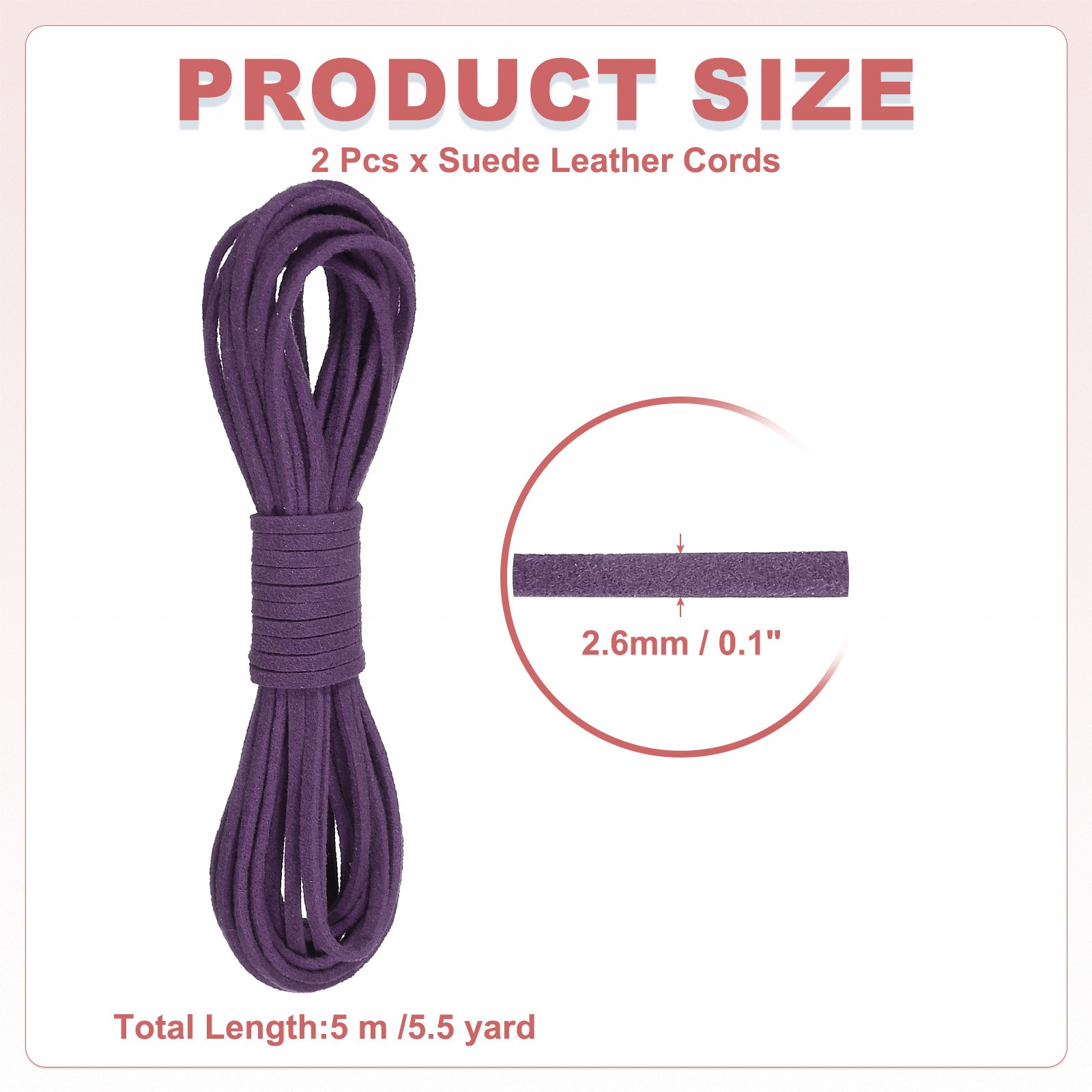 2 Pcs Faux Suede Leather Cord, 2.6mm x 5.5 Yards Flat String, Dark Purple