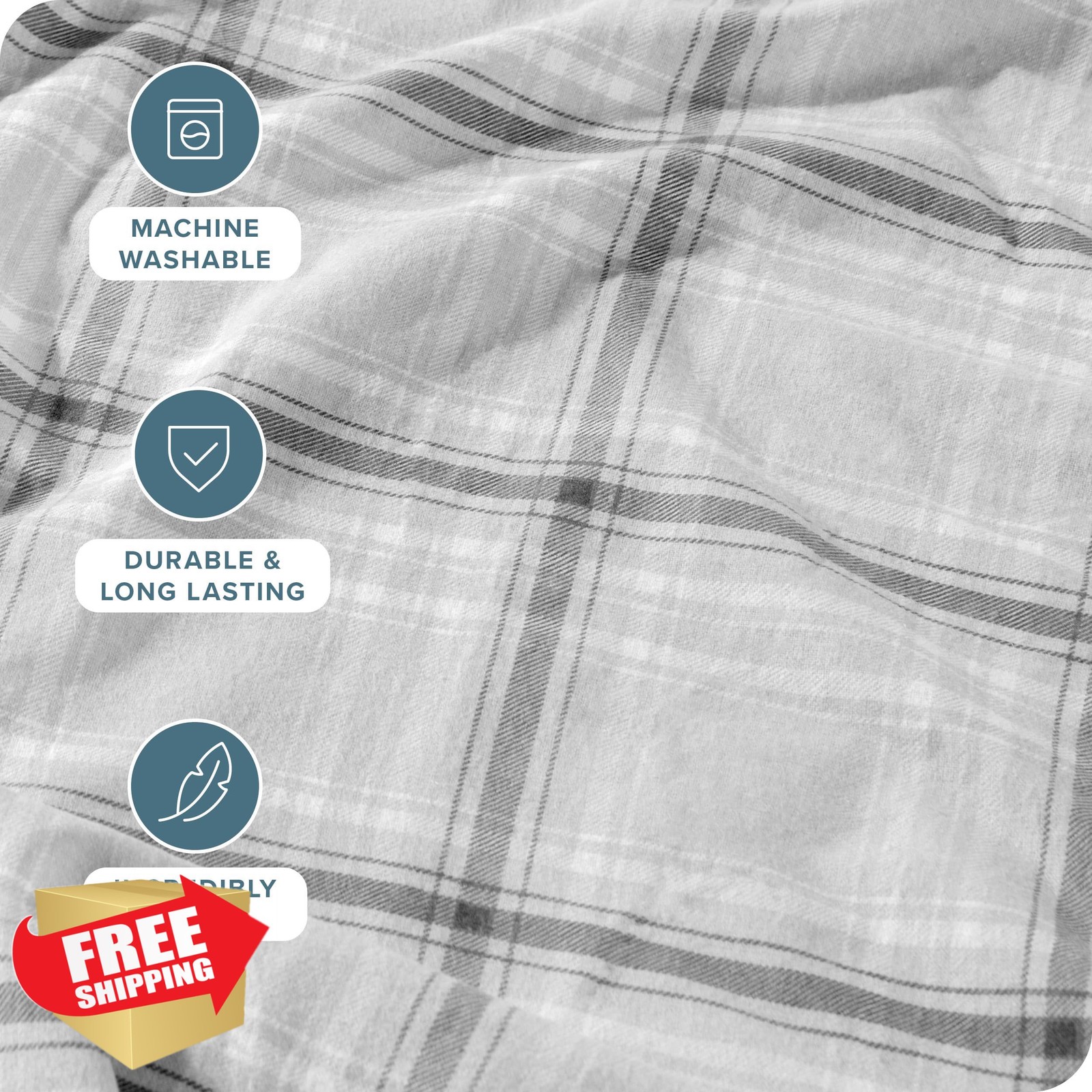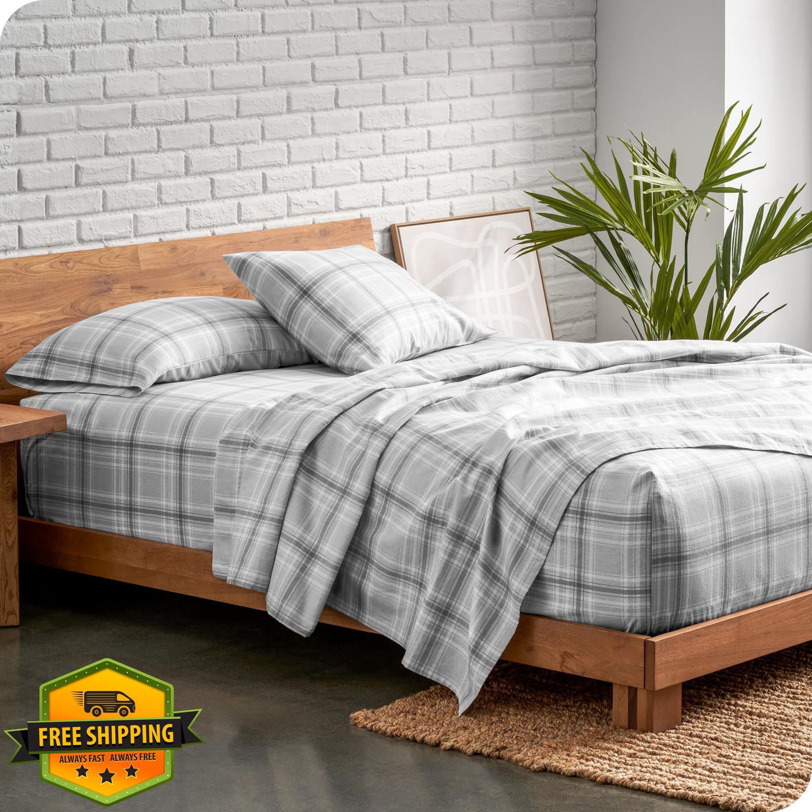 Bare Home Twin XL Flannel Sheet Set, Tartan Plaid Cotton