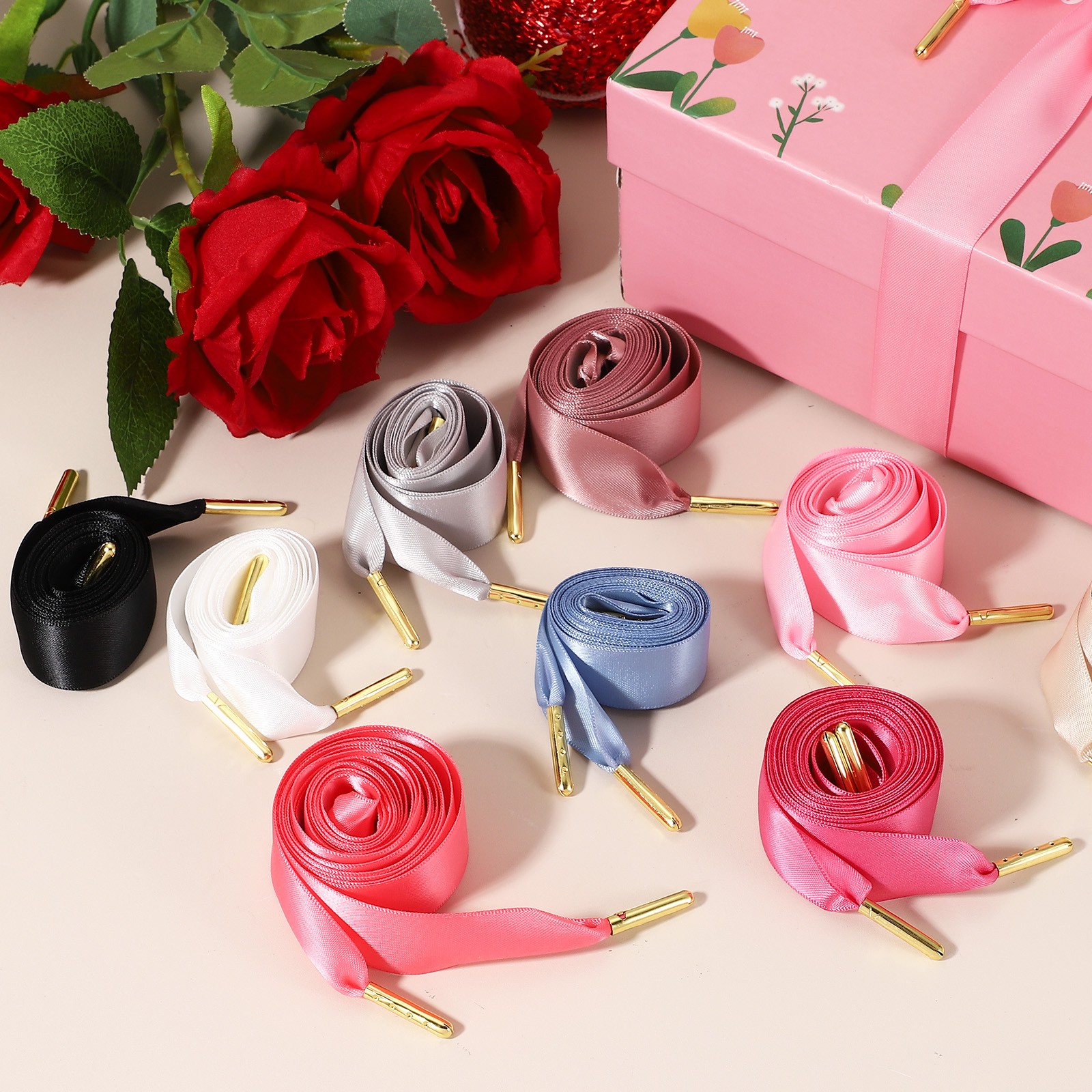2Pair Satin Ribbon Shoelaces, 2cm Ribbon Shoe Laces 150cm Long Wine Red