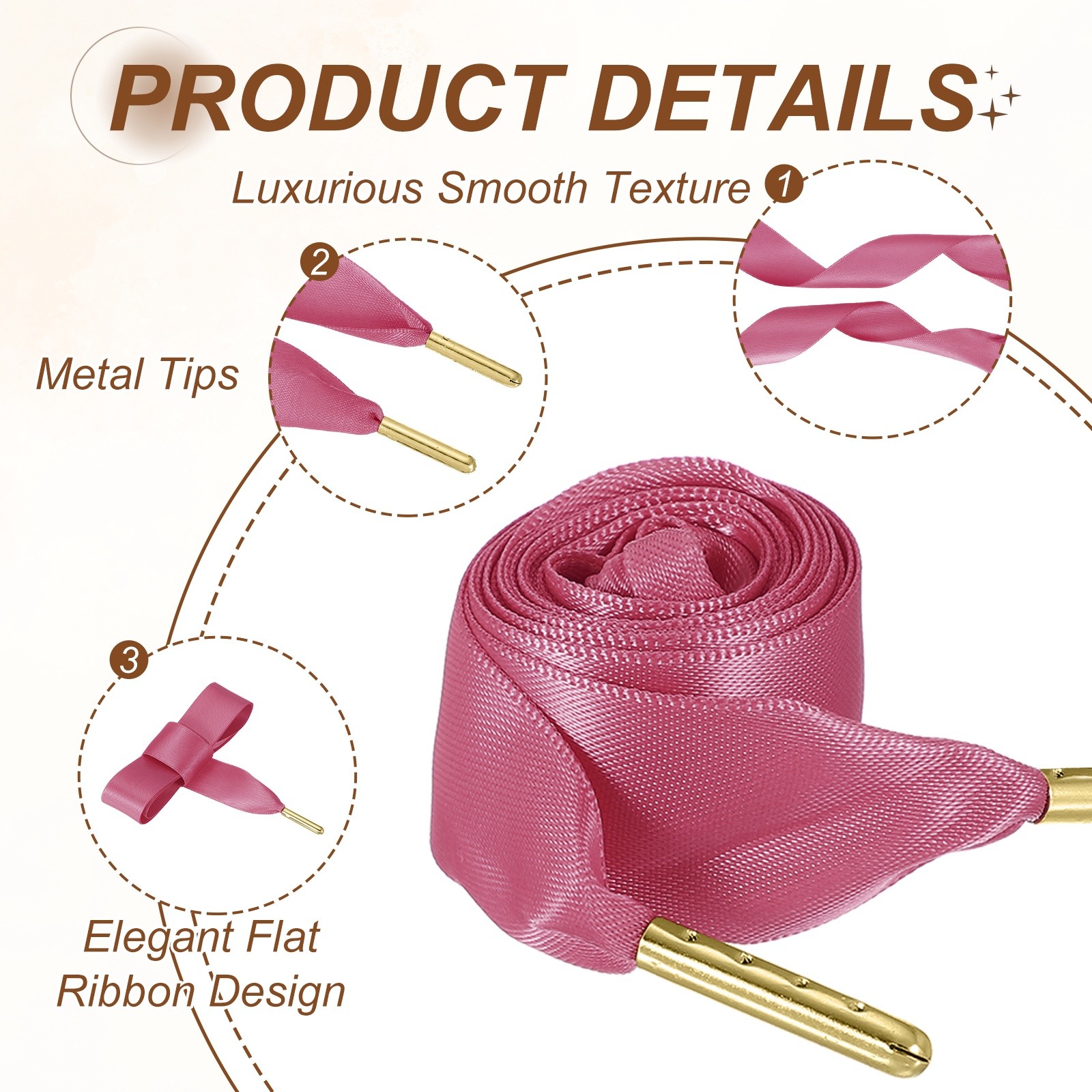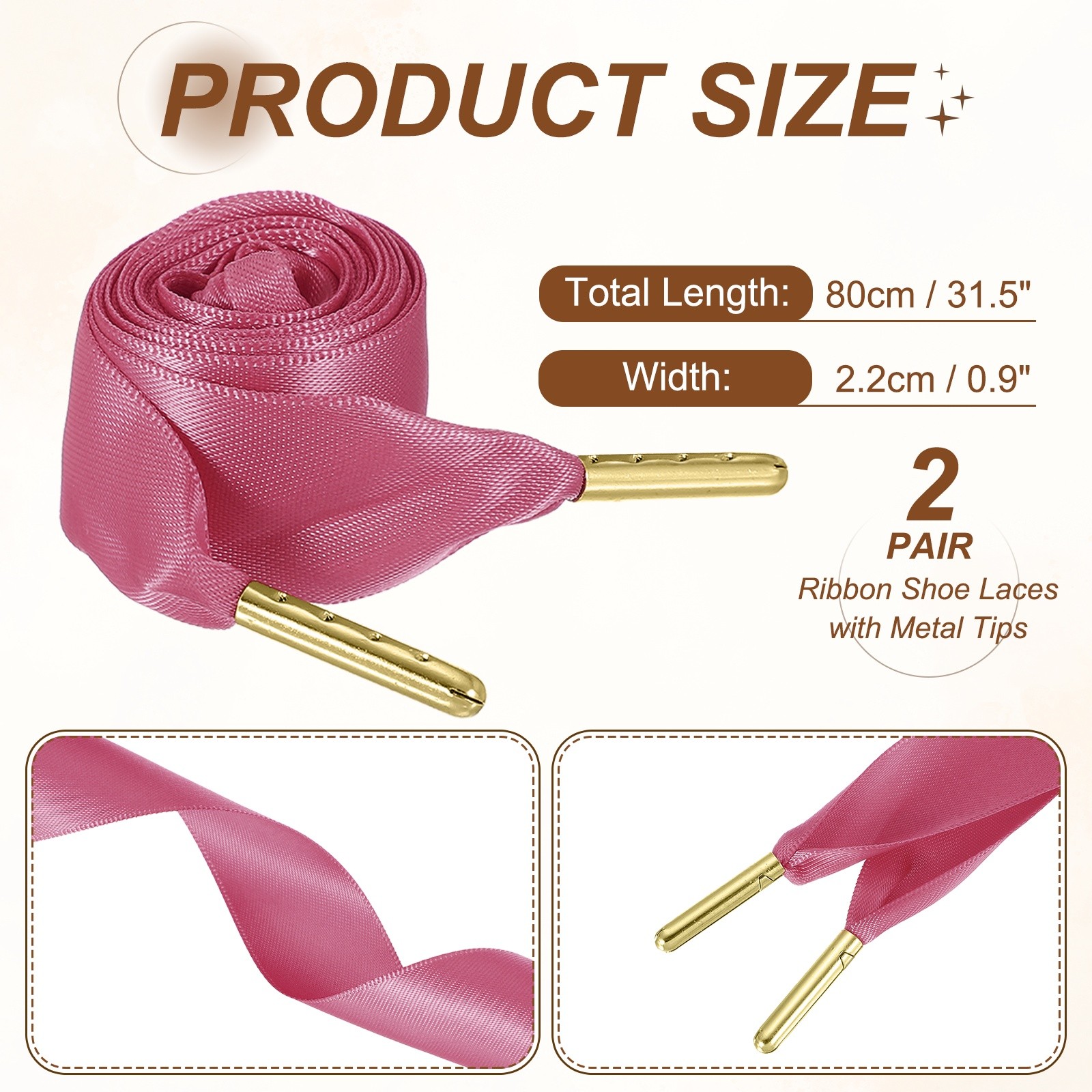 2Pair Satin Ribbon Shoelaces, 2cm Ribbon Shoe Laces 80cm Long Fuchsia
