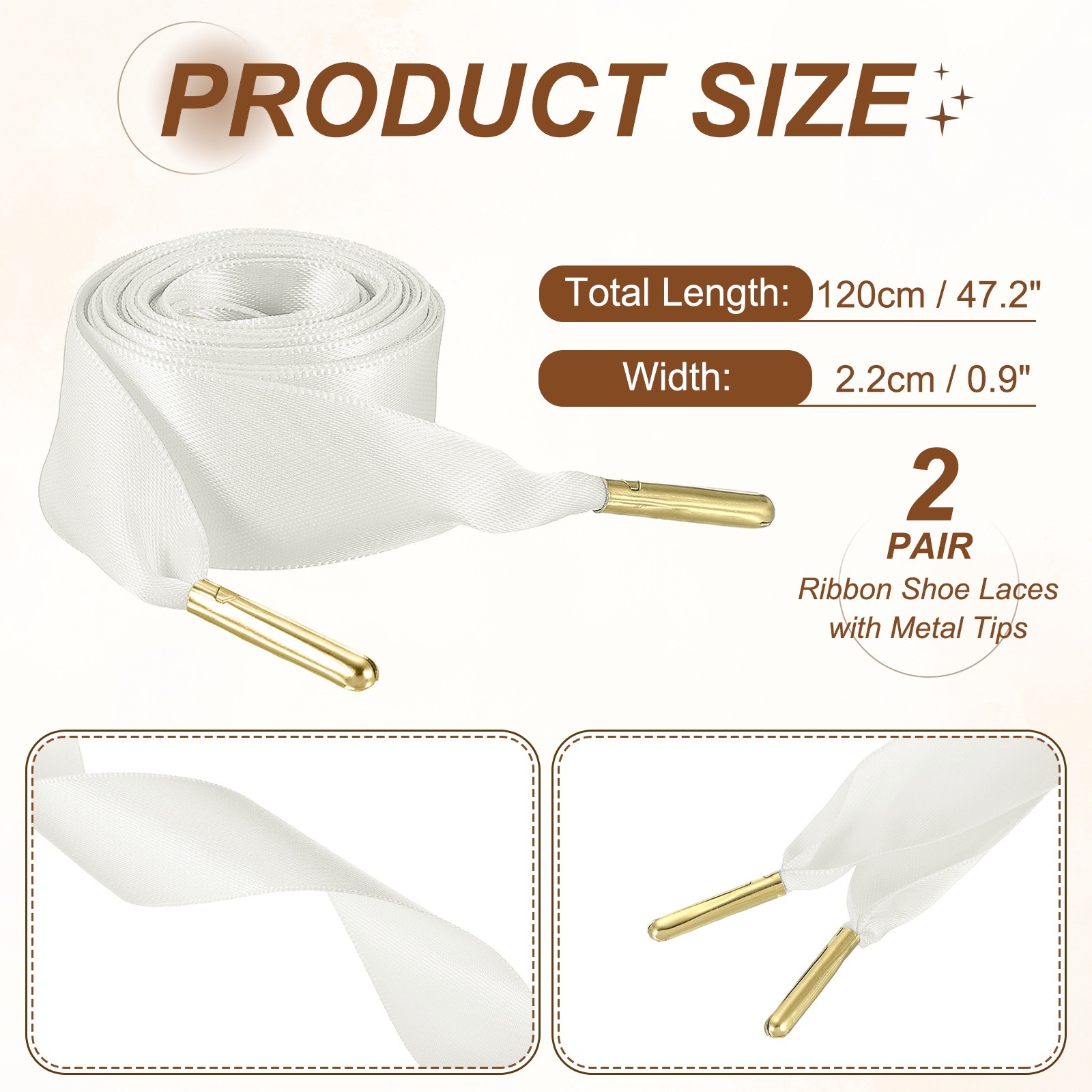 2Pair Satin Ribbon Shoelaces, 2cm Ribbon Shoe Laces 120cm Long White