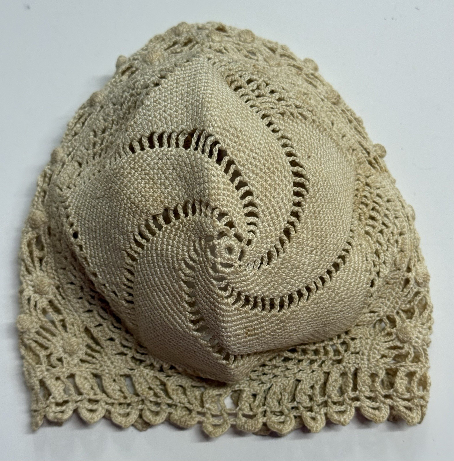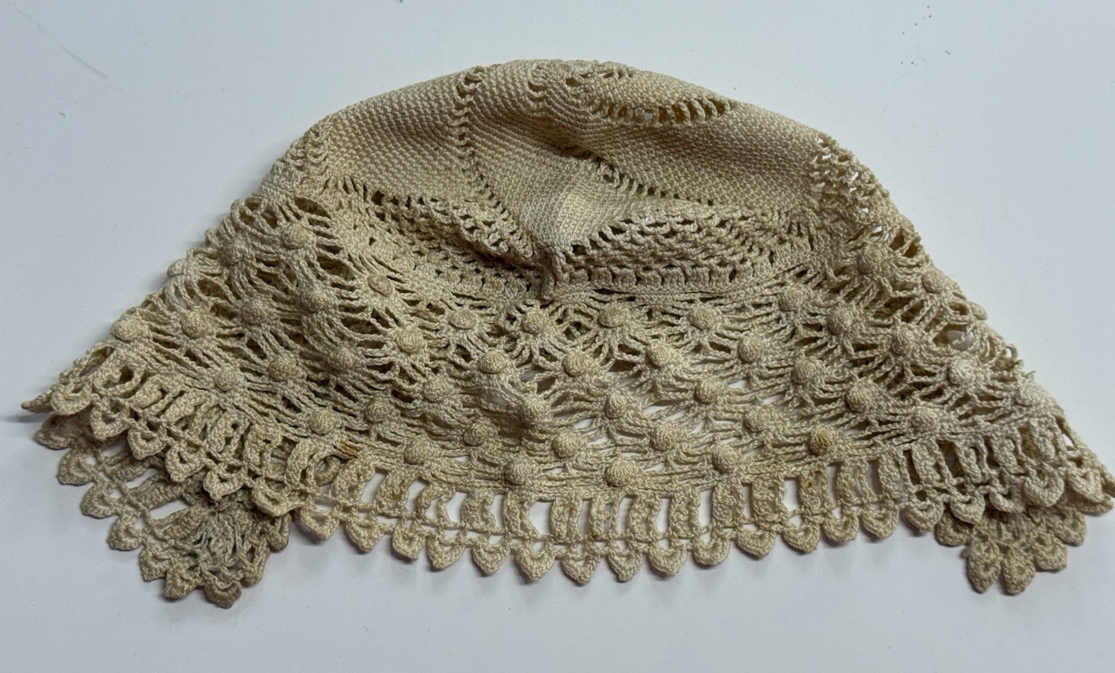 Antique Victorian Hand Crocheted Lace Baby Bonnet Hat use for Doll Pattern as-is