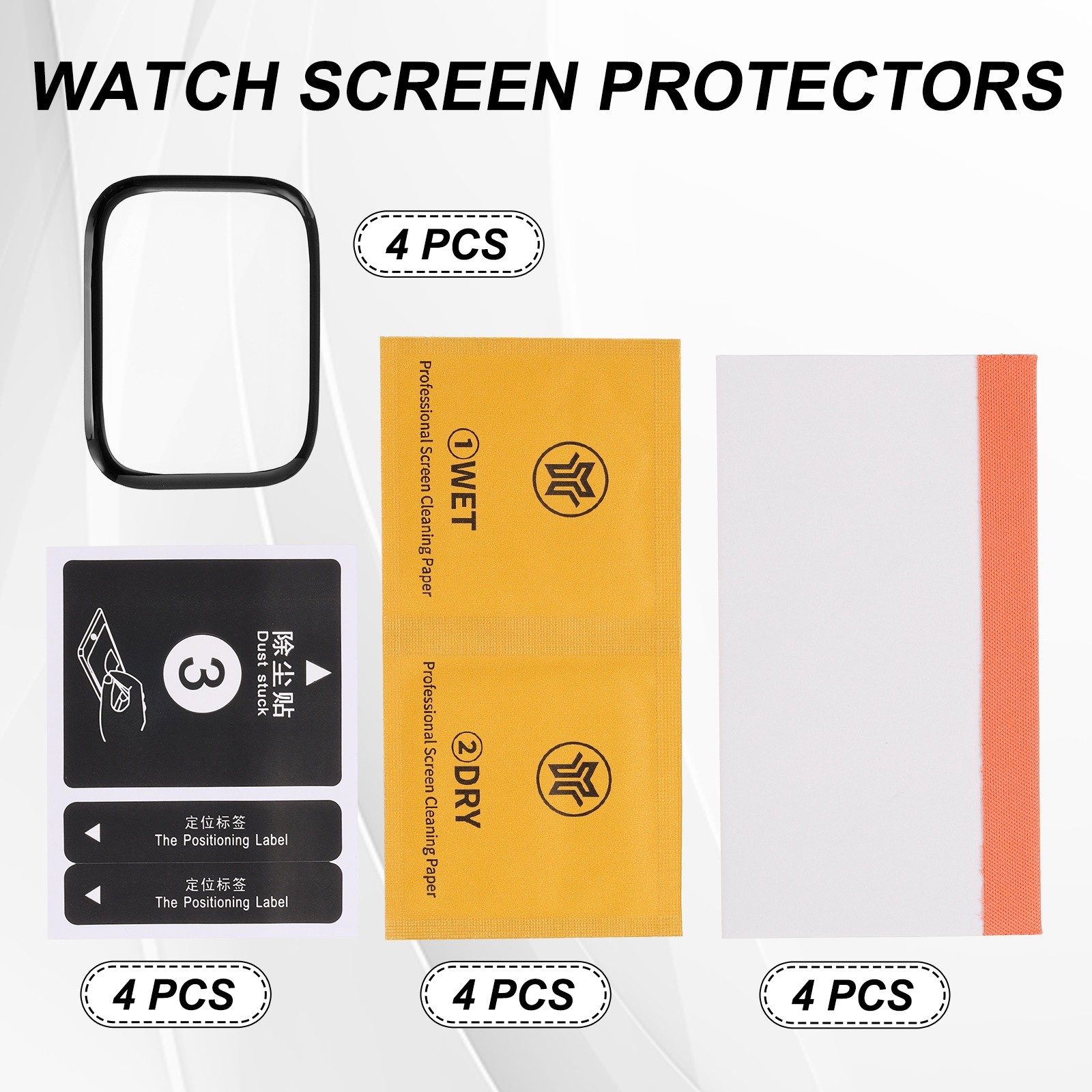 4pcs Watch Glass Screen Protectors 37mm x 42mm Rectangle HD Tempered Glass