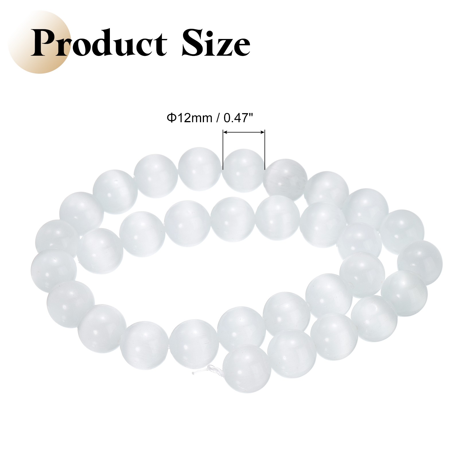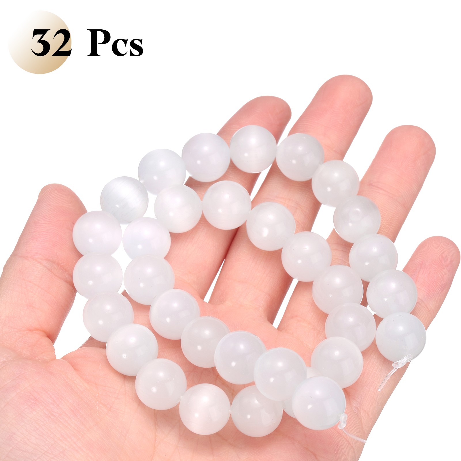 32pcs White Cat's Eye Stone Beads 12mm Round Crystal Loose Bead