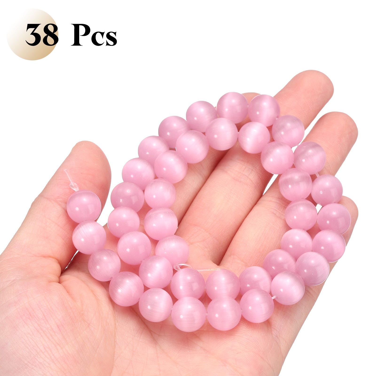 38pcs Pink Cat's Eye Stone Beads 10mm Round Crystal Loose Bead