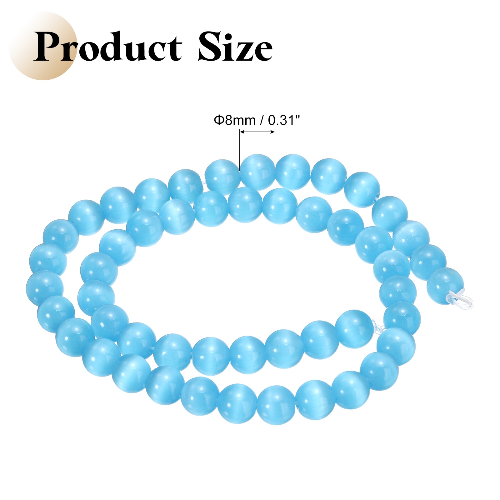 48pcs Blue Cat's Eye Stone Beads 8mm Round Crystal Loose Bead