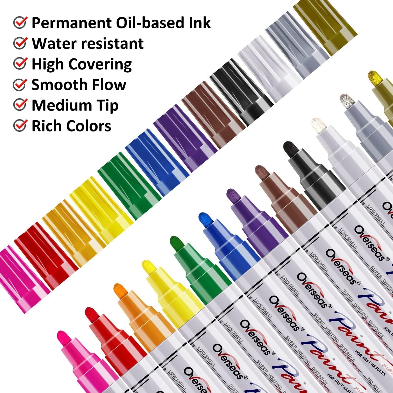 Professional Paint Pens: 12 Colors, Permanent, Waterproof, Oil-Based for Artists