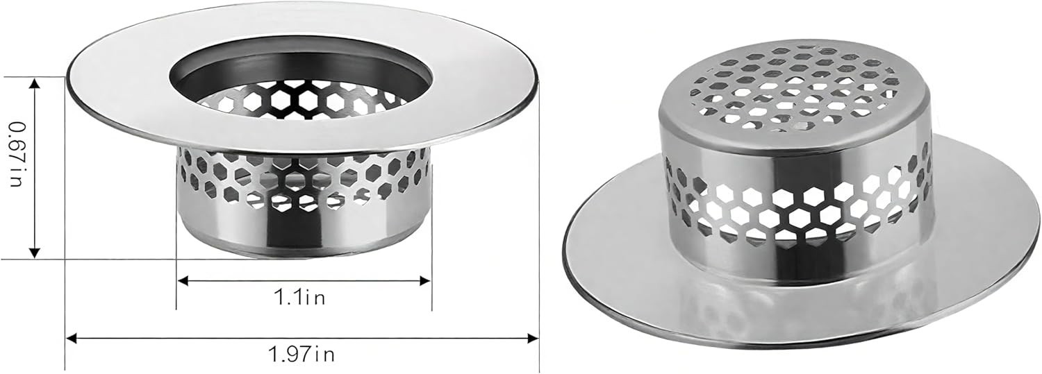 Bathroom Sink Filter Fits 1.25-1.60 Hole Stainless Steel Hair Catcher 2 Pcs