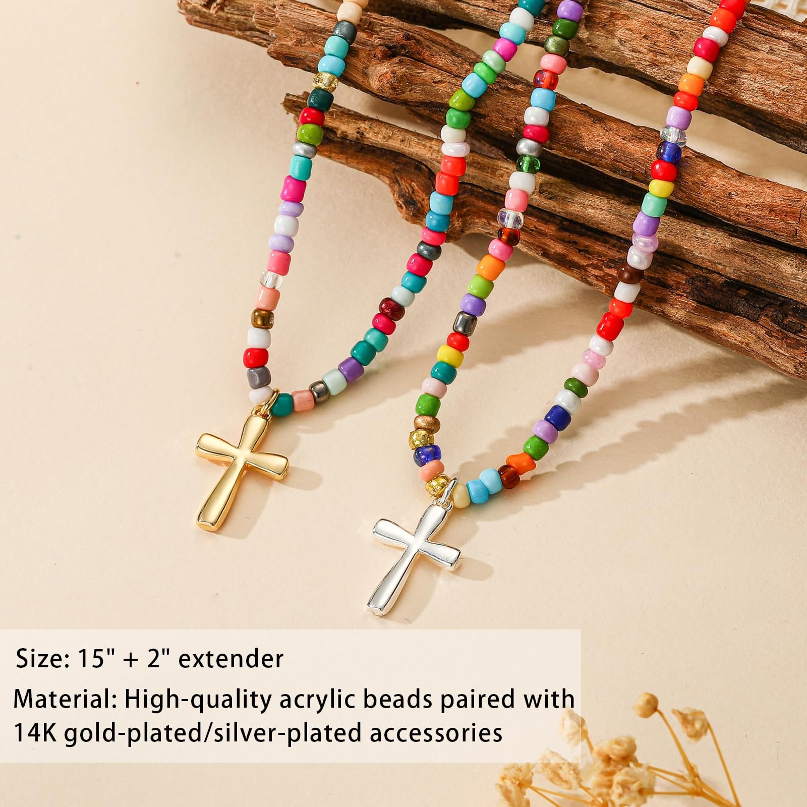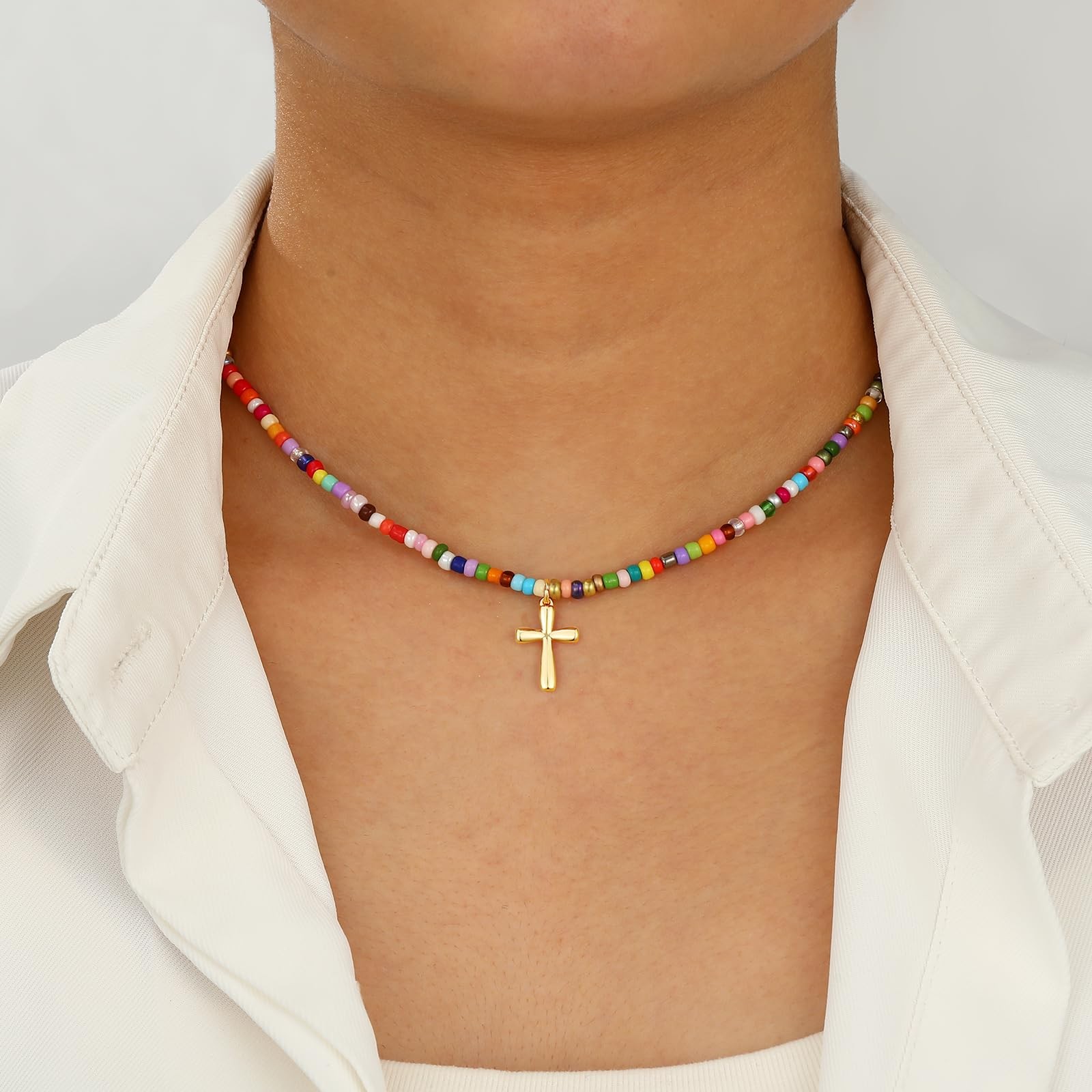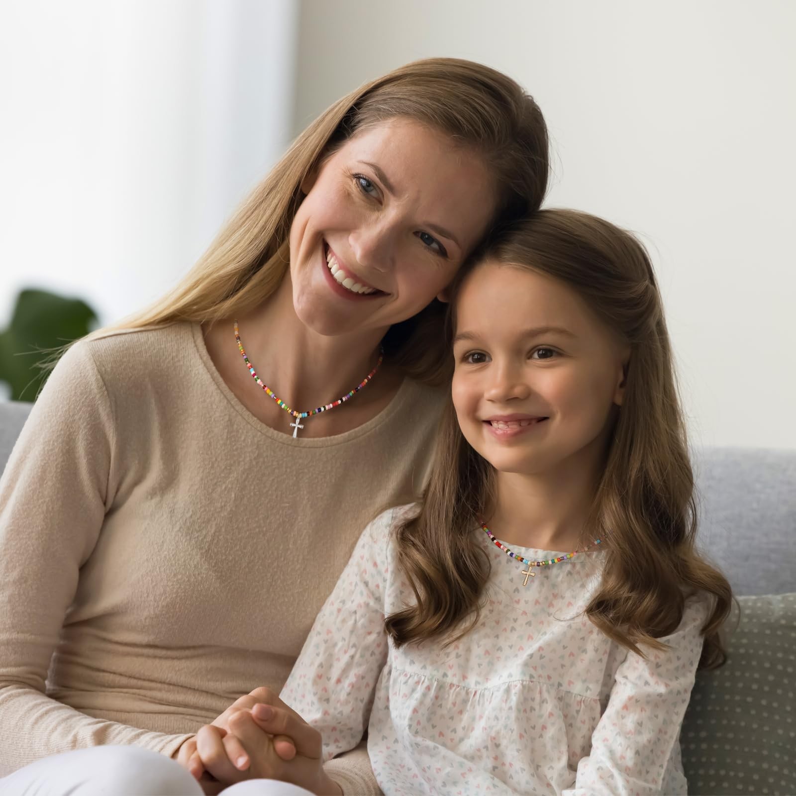 Cross Necklace for Girls Women Colorful Beaded little Kids Baptism Christian ...