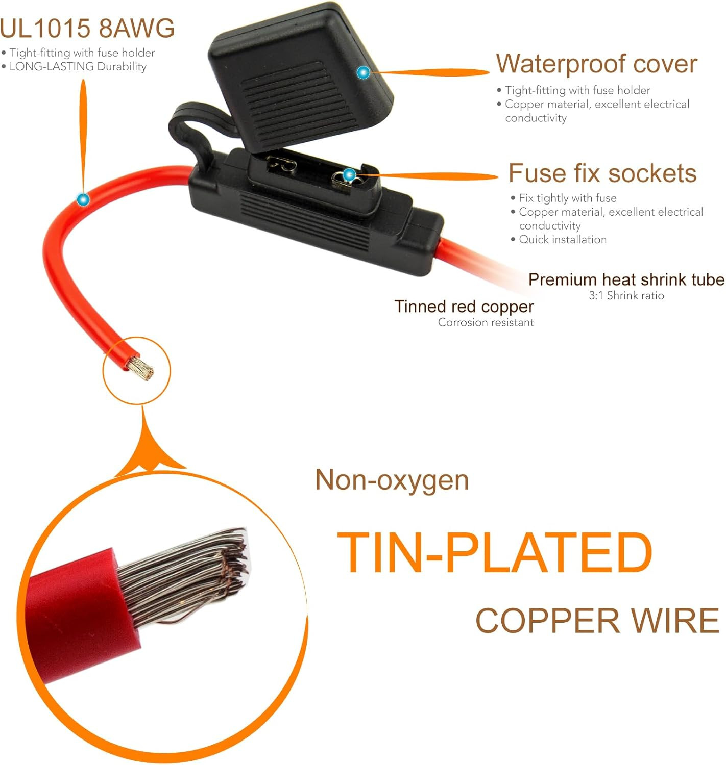 18 AWG Waterproof Heavy-Duty Maxi Inline Fuse Holder with 80A Maxi Fuse for Car