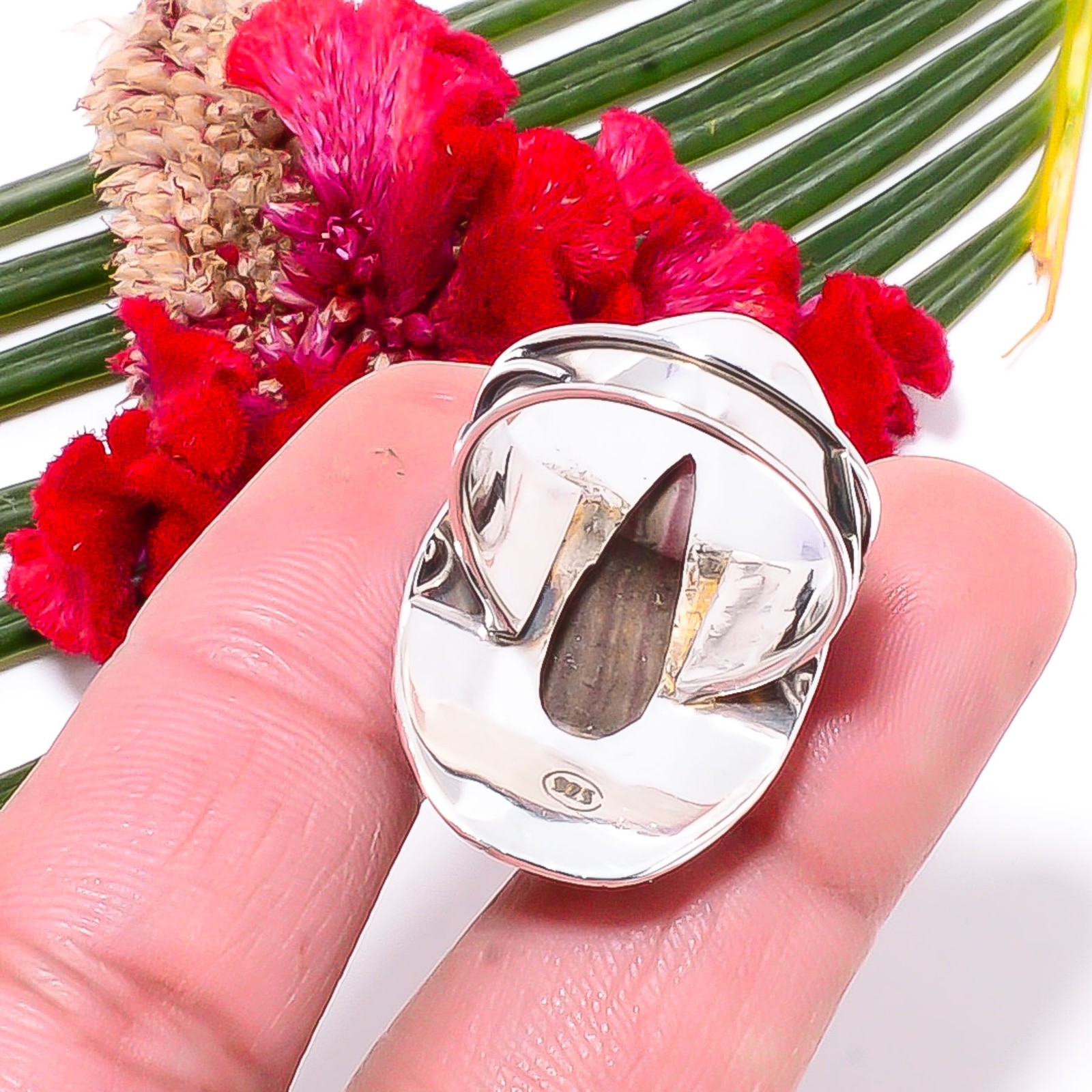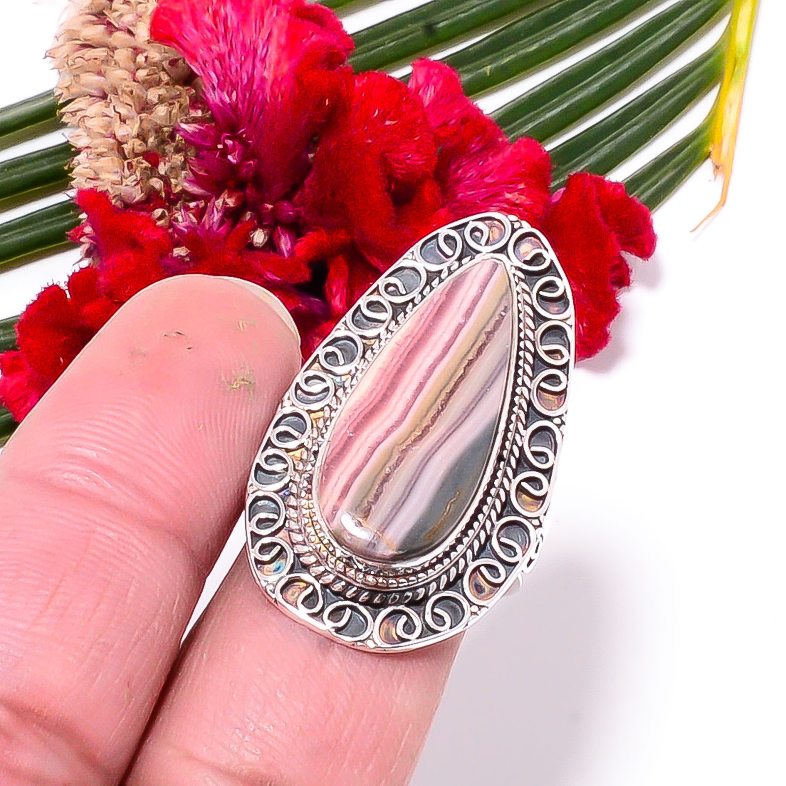 как выглядит Rhodochrosite Fine Art Oxidised 925 Sterling Silver Ring s.9 Sk3, Christmas Gift фото